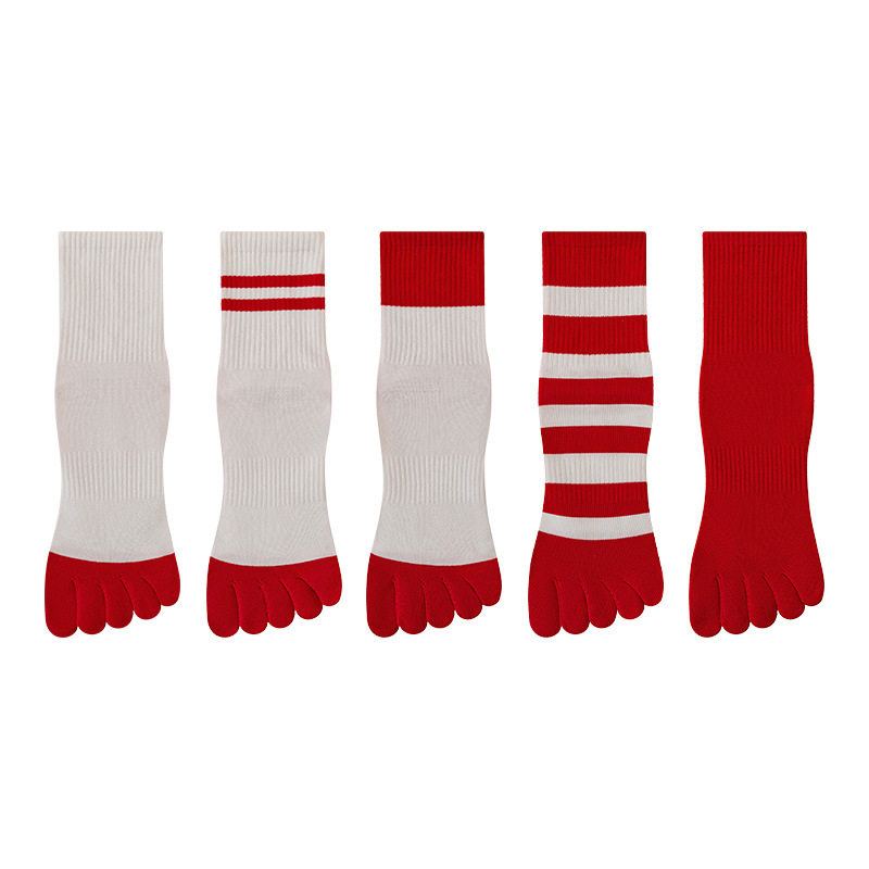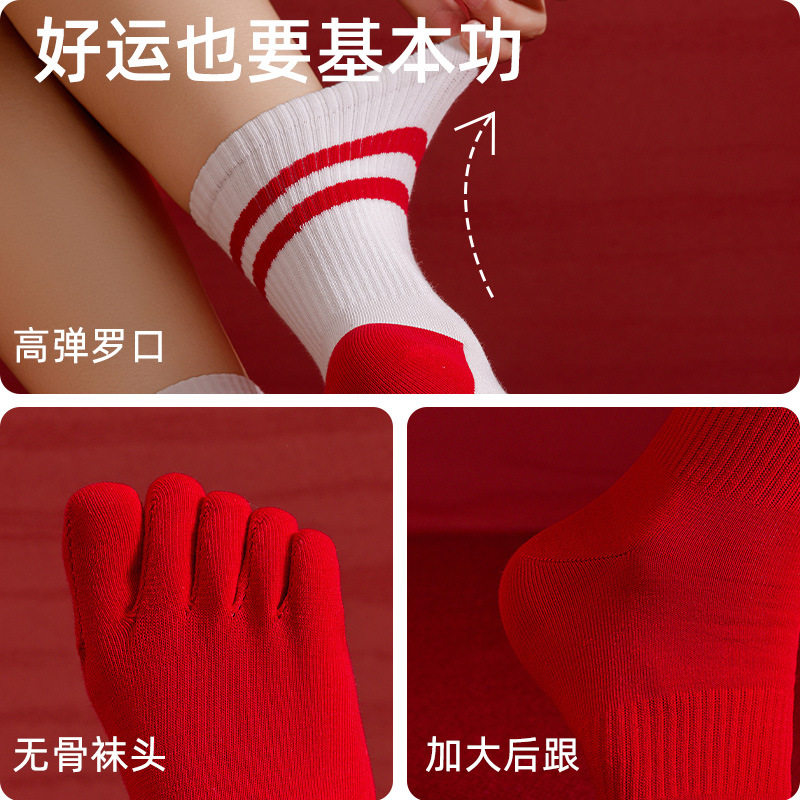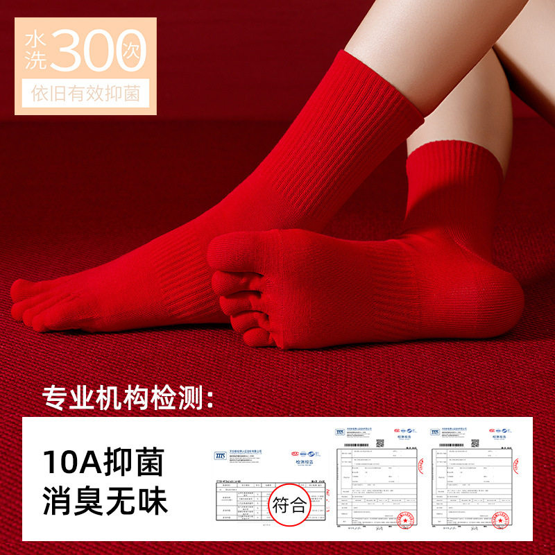 📚 本命年红袜子女秋冬保暖五指袜马年新年礼物情侣结婚无骨分趾袜子