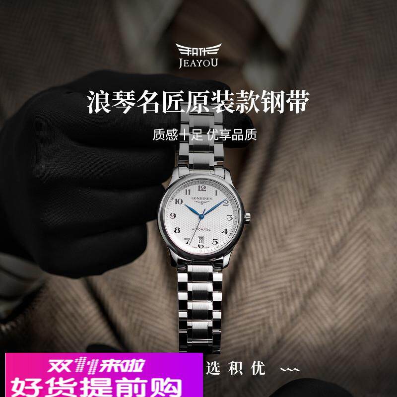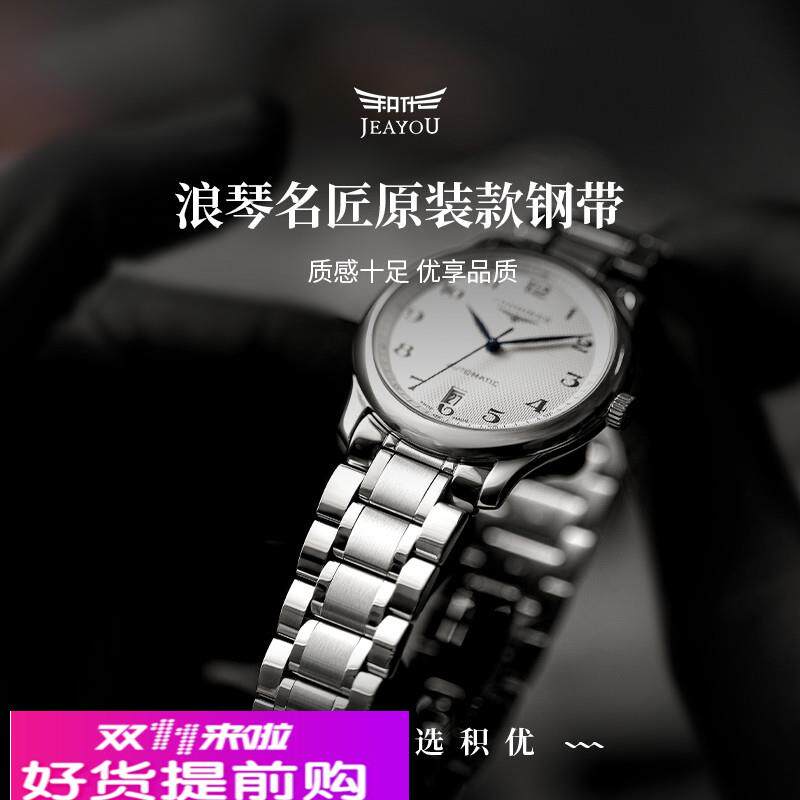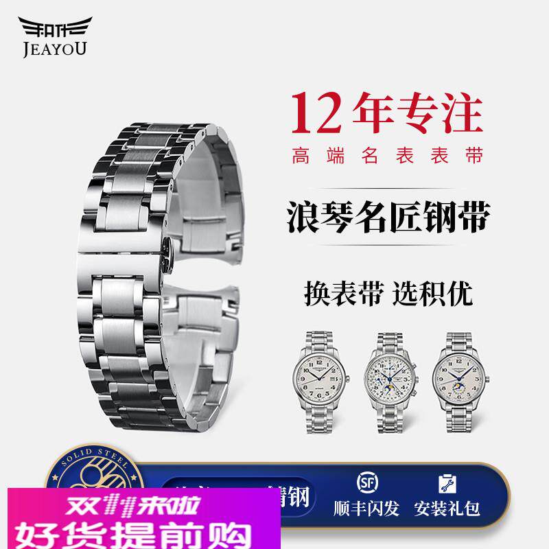 📚 适配原厂适用浪琴手表带316L精钢钢带原装名匠月相八针精钢男正品