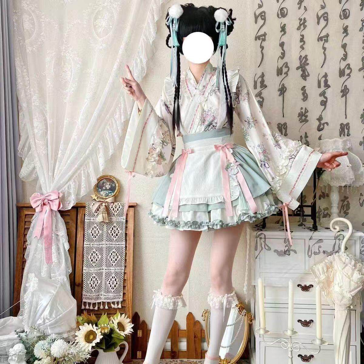 📚 中国风汉服夏洛丽塔套装中华风交领裙女仆纯欲cos服汉元素短裙女