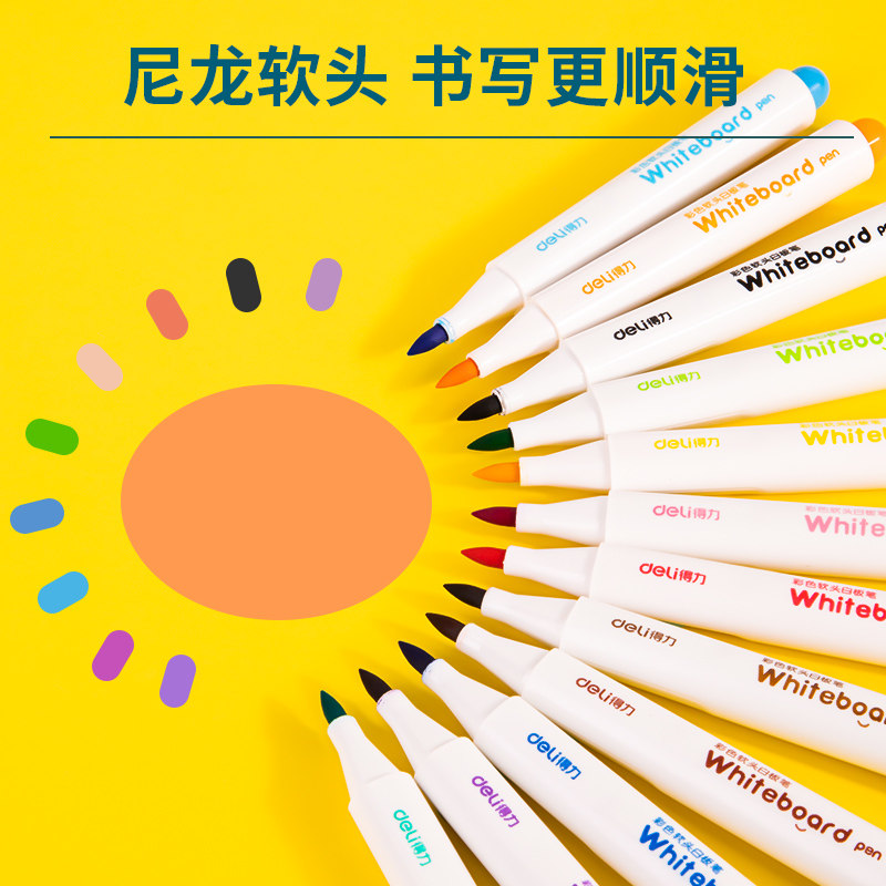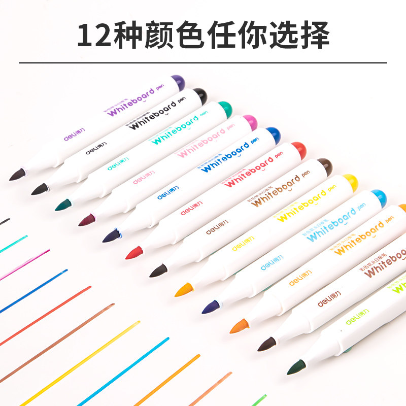📚 得力彩色白板笔儿童可擦除可水洗水性黑板画板笔白班记号笔12色可水洗易擦写彩笔专用细头小号幼儿用写字批发