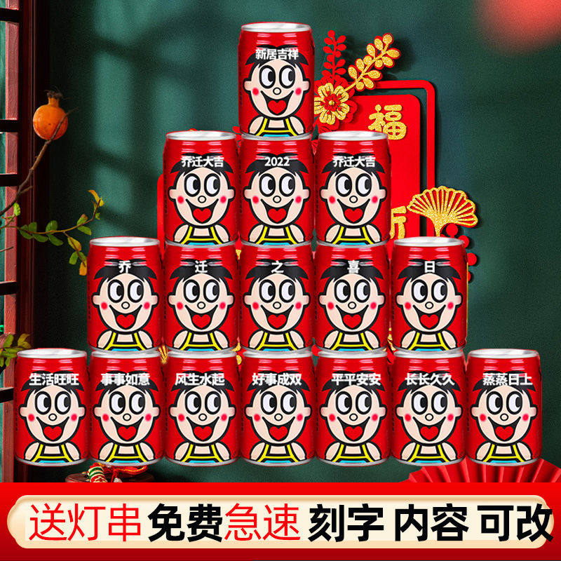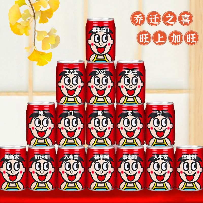 📚 乔迁之喜旺仔牛奶定制易拉罐刻字入宅搬新家用品摆件乔迁新居仪式