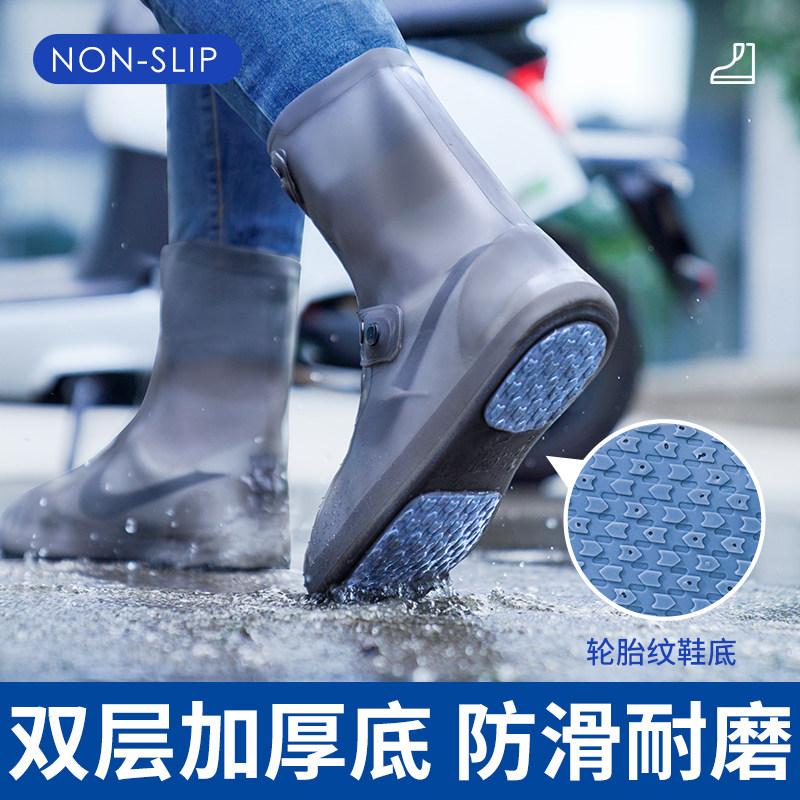 📚 正雨中高筒硅胶外穿防水耐磨鞋套加厚防雨露营可踩水雨脚套男女