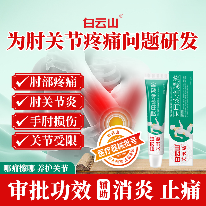📚 白云山关灵活医用疼痛凝胶辅助治疗肘关节炎腱鞘炎扭挫伤消炎止痛