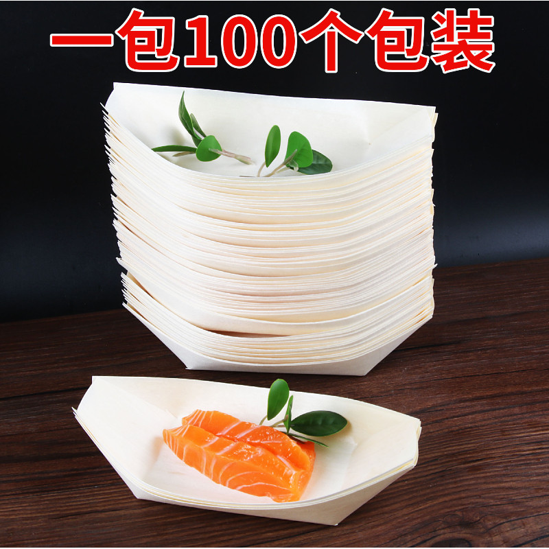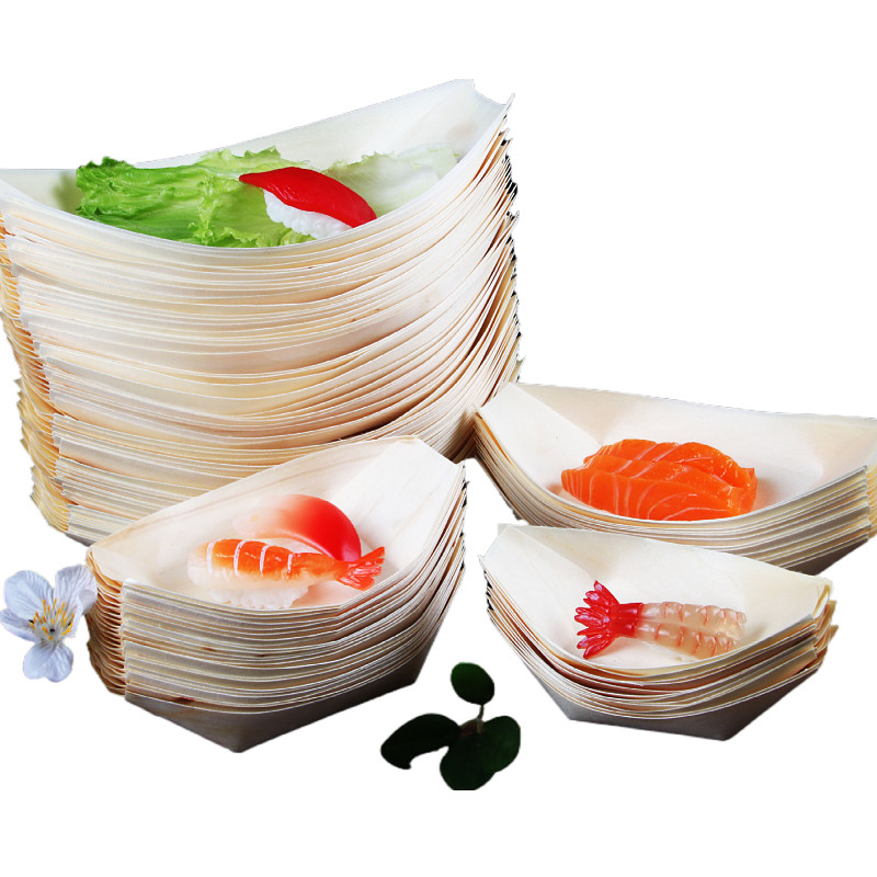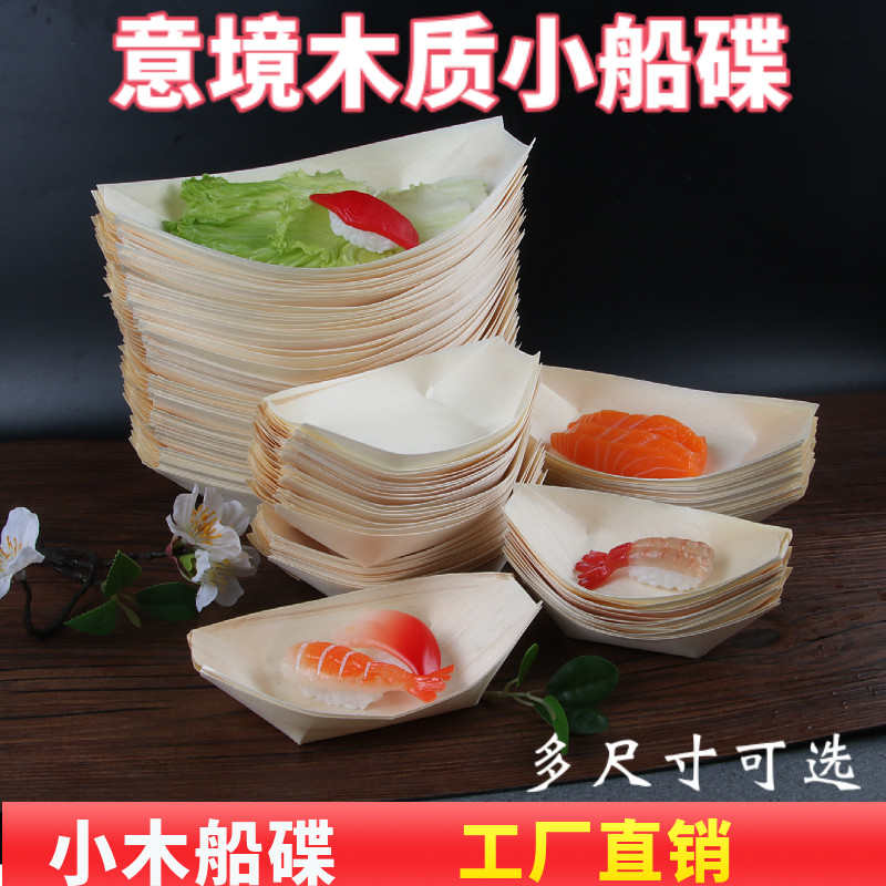 📚 网红摩天轮餐具船形碟木皮小船木质寿司刺身点心创意烤肉配菜盘子