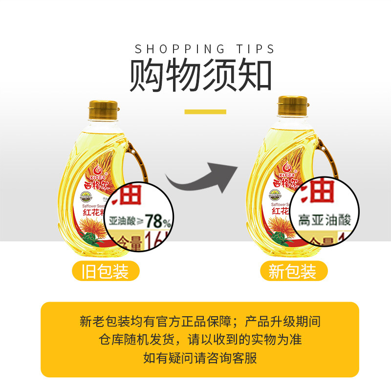 📚 新疆西格尔食用红花籽油1.6升一级压榨红花油新疆塔城纯红花籽油