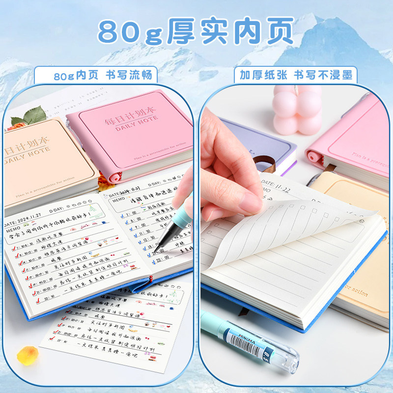 📚 每日计划本小学生自律打卡笔记本卡皮巴拉高颜值暑假做计划时间管理随身便携日记本加厚皮面迷你方形计划本子