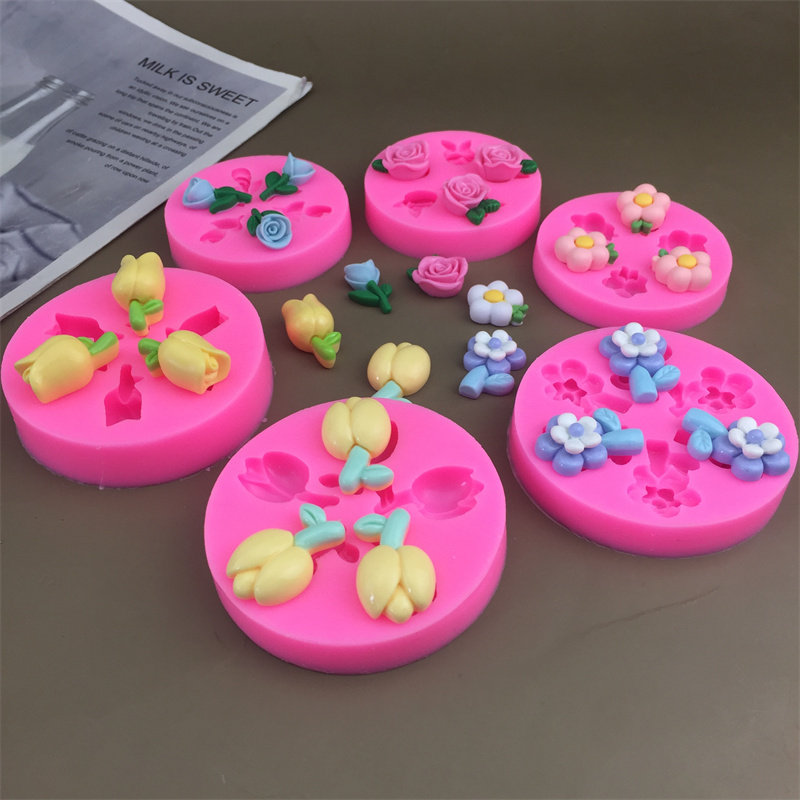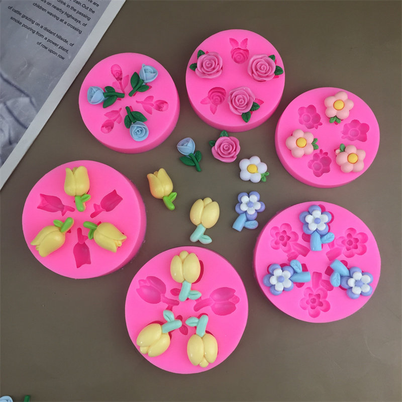 📚 郁金香花蕾花苞双层花鸡蛋花玫瑰滴胶配件硅胶模具巧克力翻糖装饰