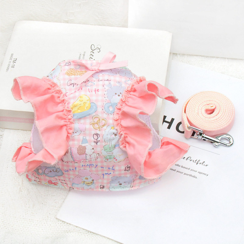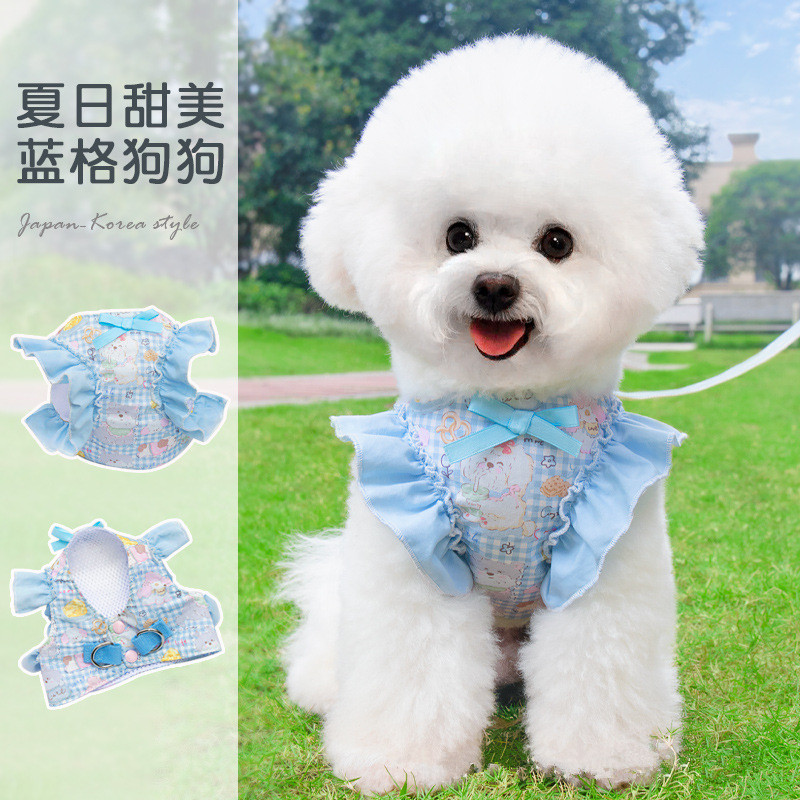 📚 纯棉飞袖狗狗牵引绳带衣服宠物小狗狗裙子约克夏马尔济斯夏季
