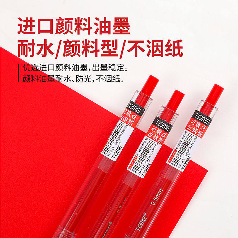 📚 TOME图米刷题笔红笔学生用老师专用教师批改作业红色水笔st笔头按压按动式中性笔ins风日系简约高颜值圆珠笔