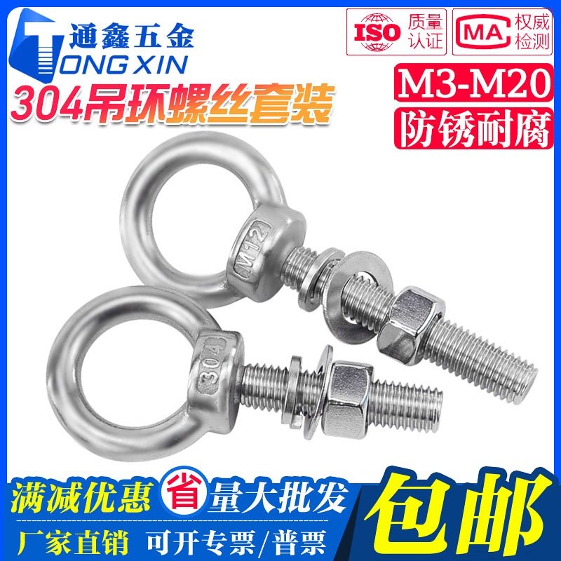 📚 304不锈钢加长吊环螺丝螺母平垫弹垫套装组合 带环螺栓穿墙螺丝杆