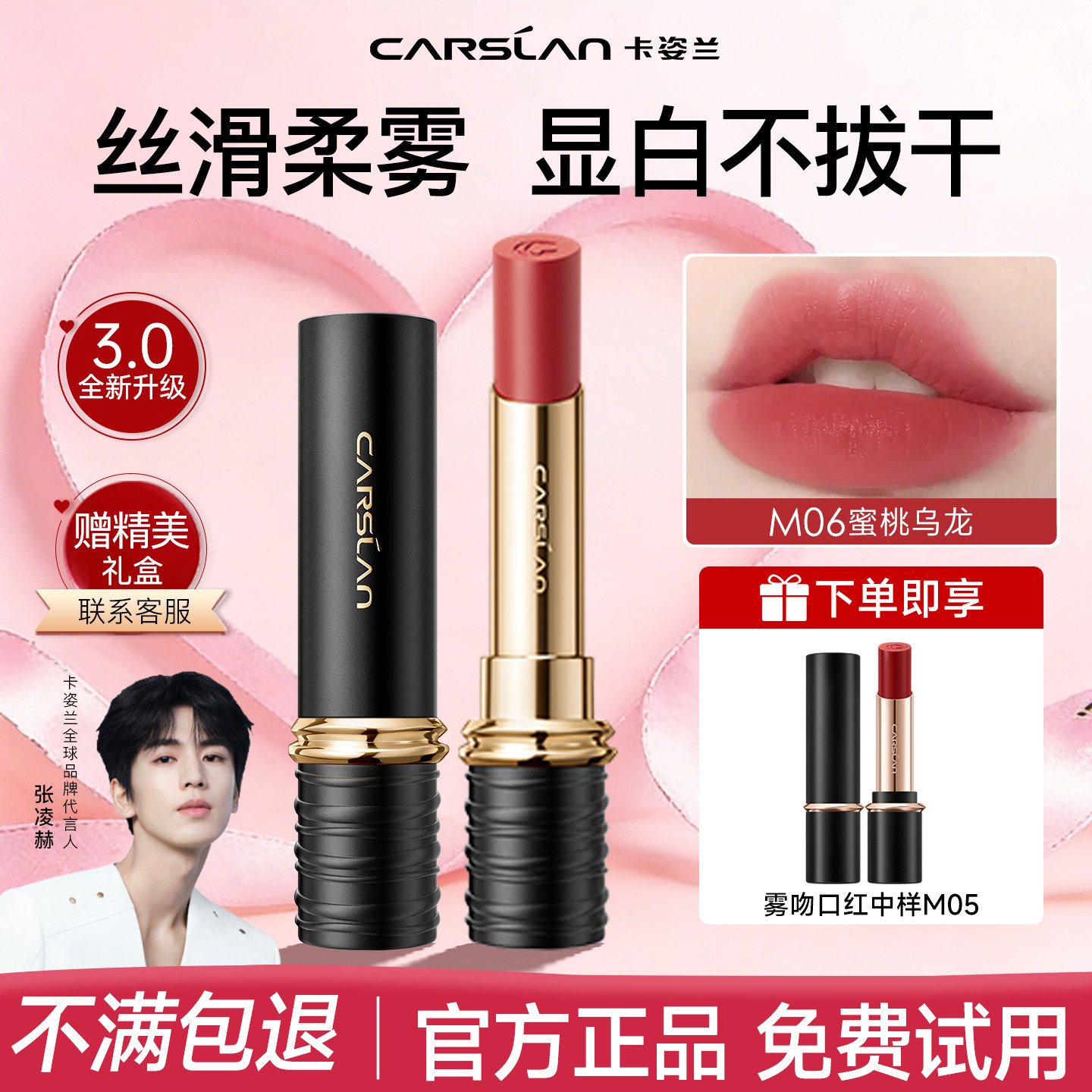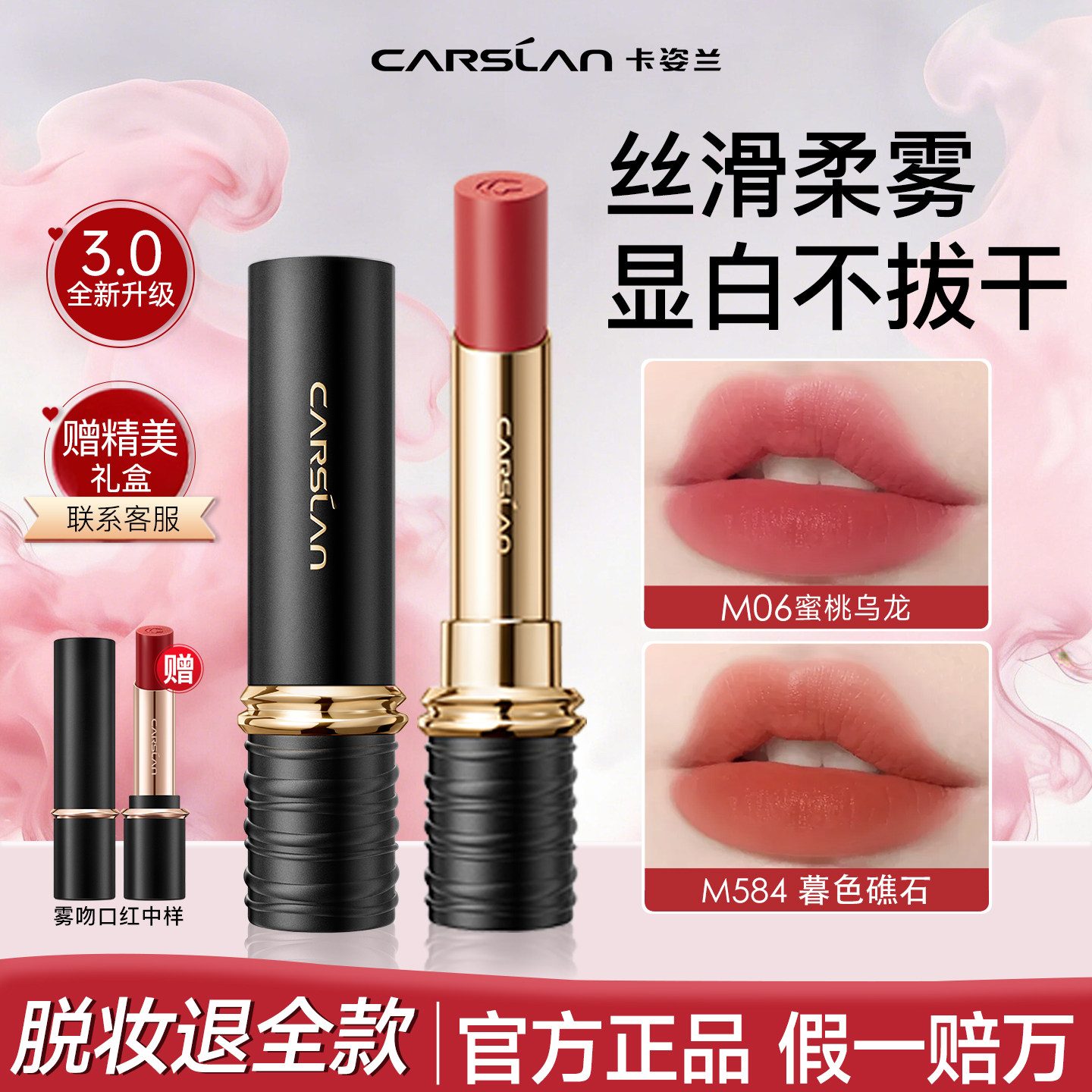 📚 卡姿兰雾吻口红唇釉不沾杯低饱和哑光芭乐色官方正品礼盒2026新款
