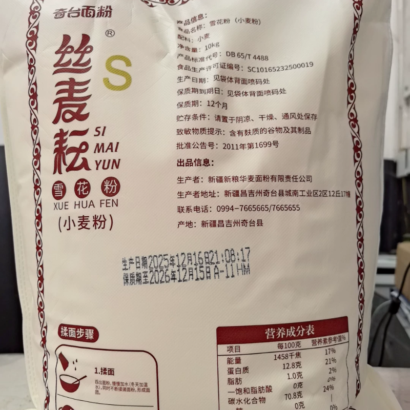 📚 新疆面粉丝麦耘雪花粉10kg奇台老头面20斤馒头包子饺子面条家用粉