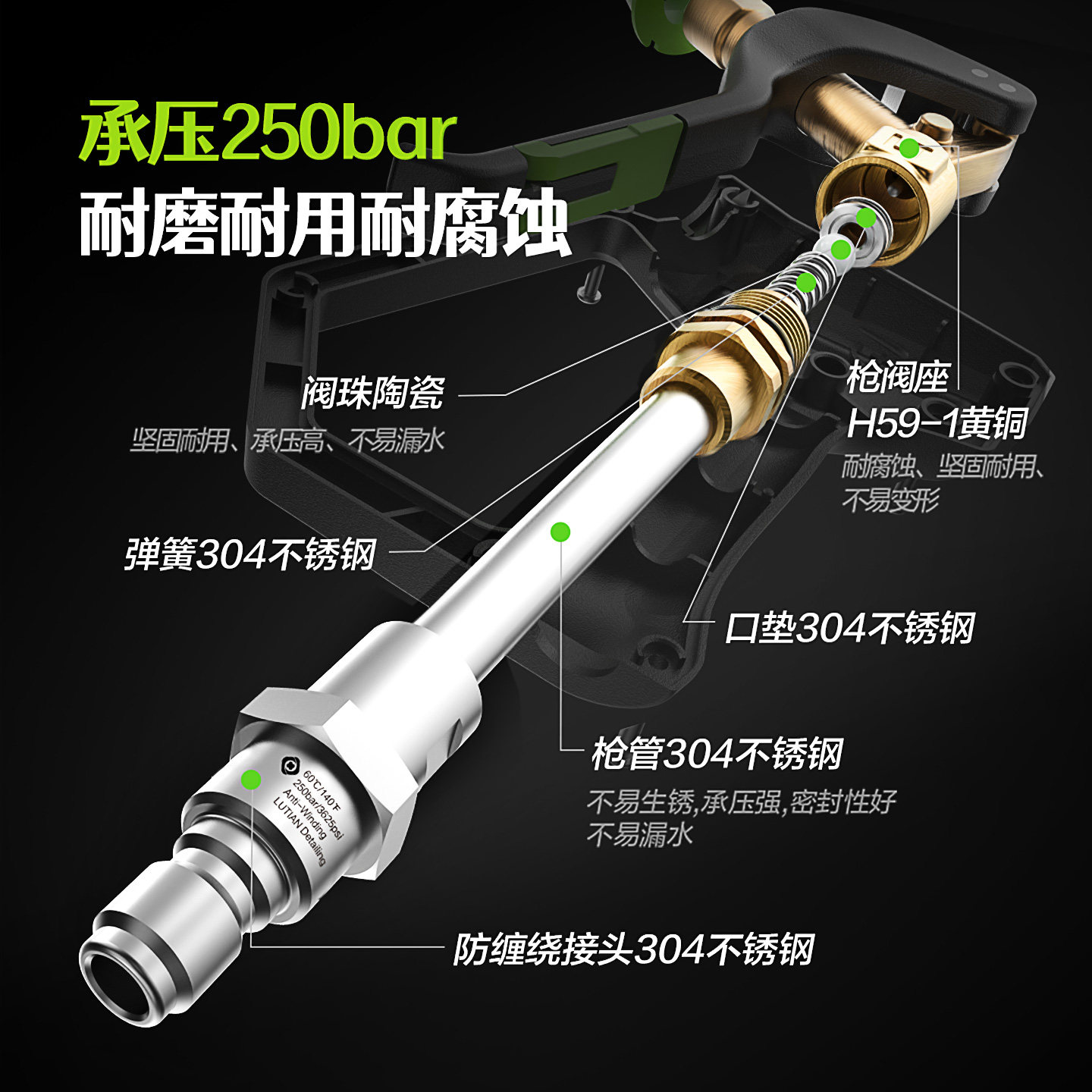 📚 绿田G19精护短枪柄涂鸦蛇年彩绘高压洗车机快插水抢清洗配件工具