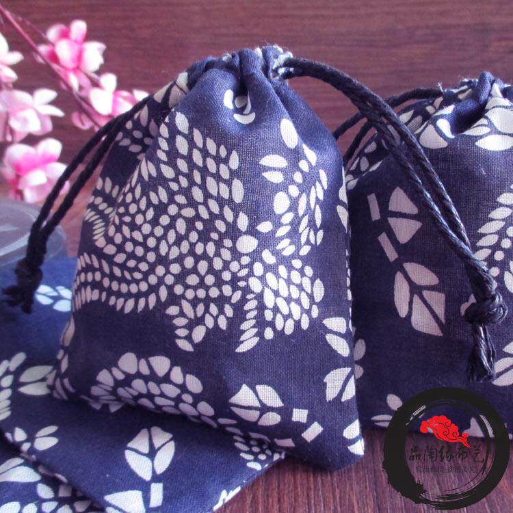 📚 蓝印花布青花袋 小布袋子 抽口束口袋 香料饰品包装布袋 环保袋