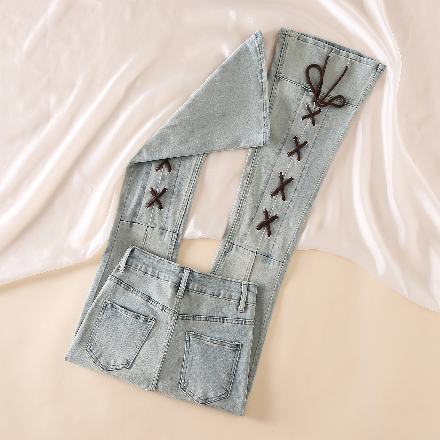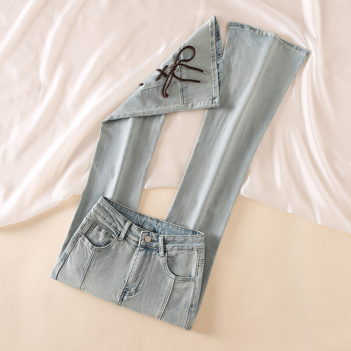 📚 复古高腰微喇叭牛仔裤女2025冬季小个子宽松系带设计感显瘦马蹄裤