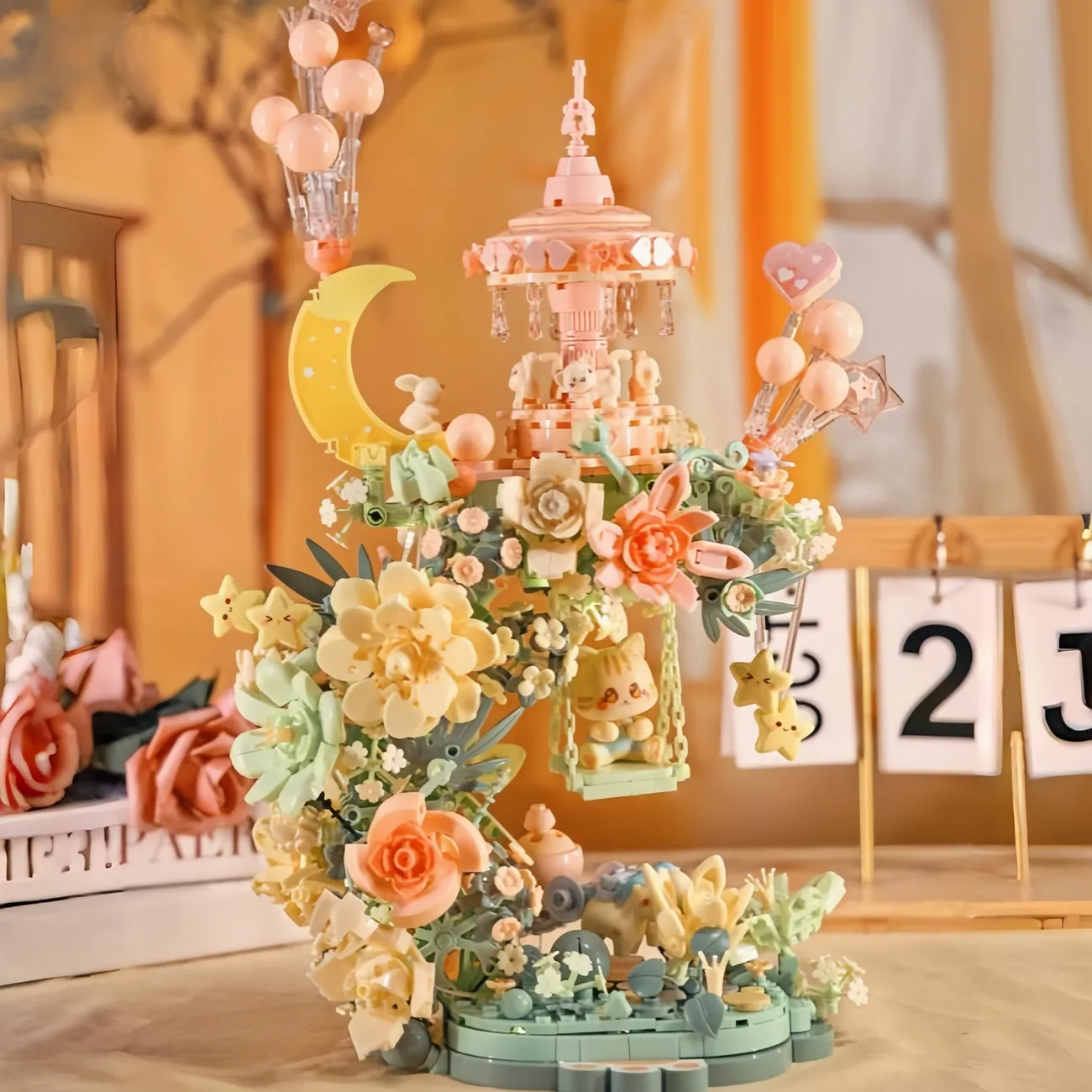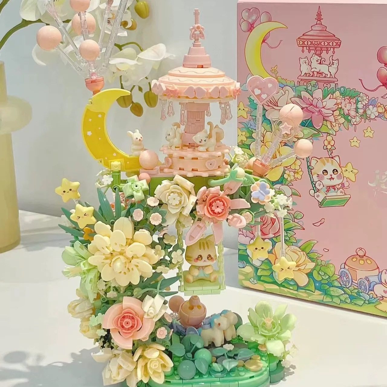 📚 森宝积木花颜月下永生花茶语旋转音乐盒瀑布花送闺蜜生日女孩礼物
