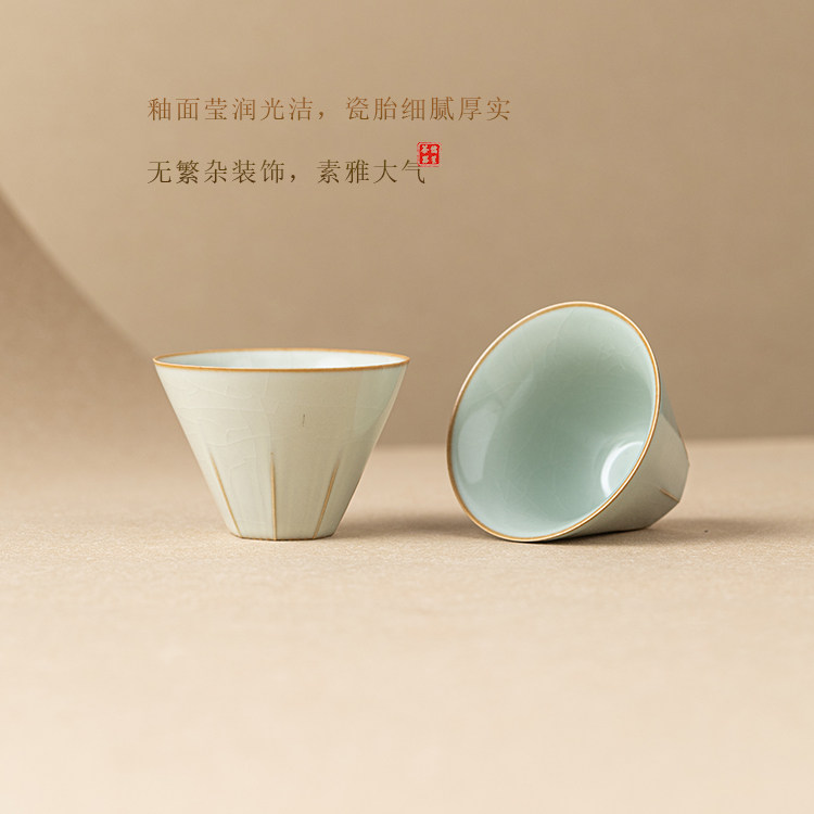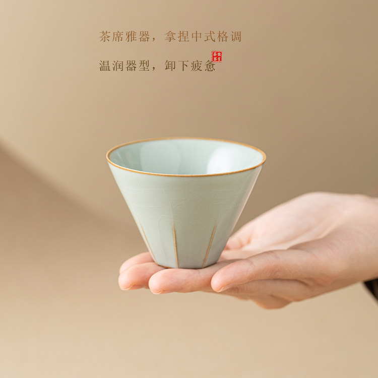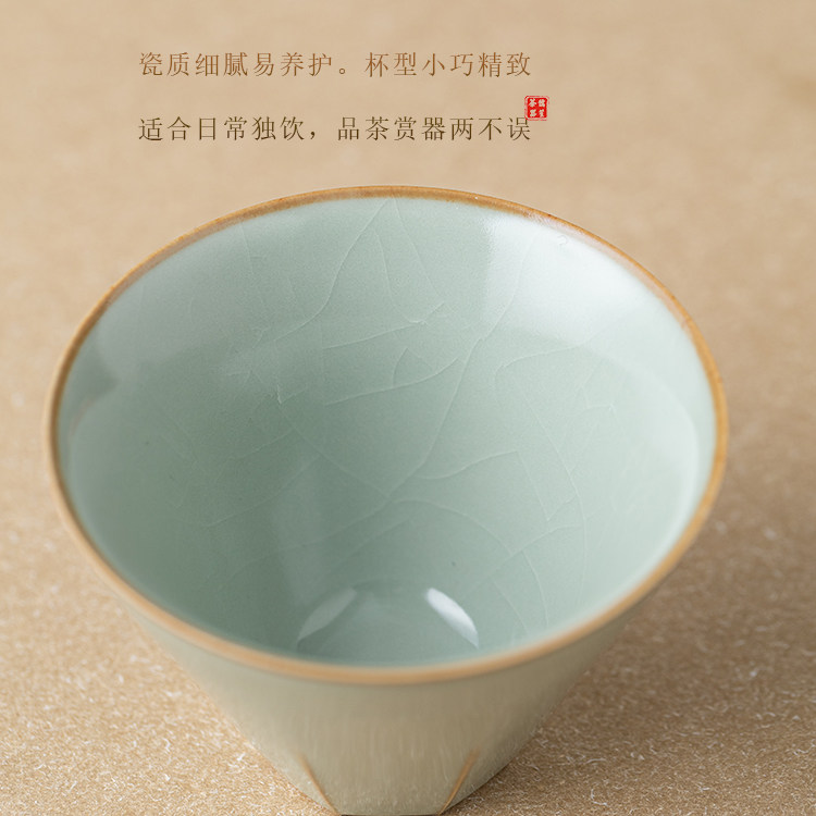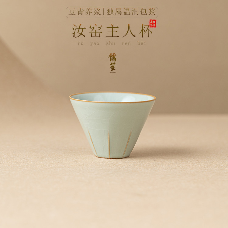 📚 儒笙豆青汝窑茶杯陶瓷品茗杯开片可养功夫茶具主人杯单杯茶盏茶碗