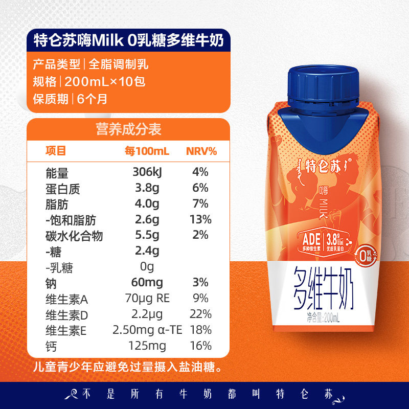 📚 特仑苏嗨MILK多维牛奶梦幻盖200mL×10包0乳糖维生素A/D/E高营养