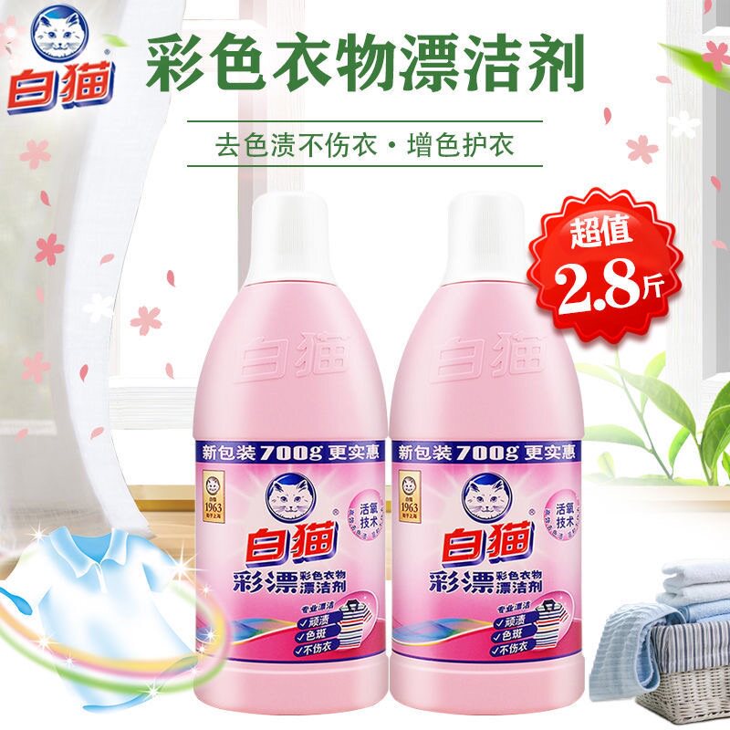 📚 白猫彩漂粉漂白剂去渍去黄增白彩色衣物通用白衣服专用洗白去污渍