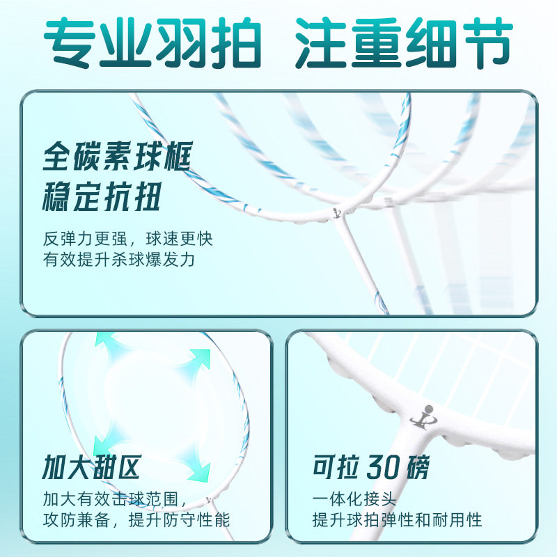 📚 羽毛球拍5U专业级全碳素羽毛球拍25-28磅碳纤维超轻羽毛球拍礼品