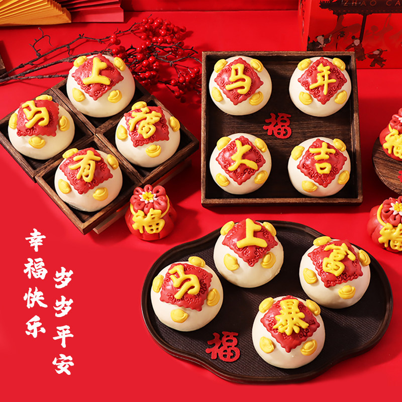 📚 新年花馍春节年货礼盒6件福袋马年大吉上暴富有福花饽饽馒头2026