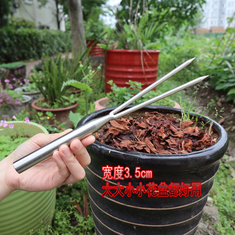 📚 不锈钢叉子松土家用花盆清理杂草赶海刨土换盆园艺工具结实耐用