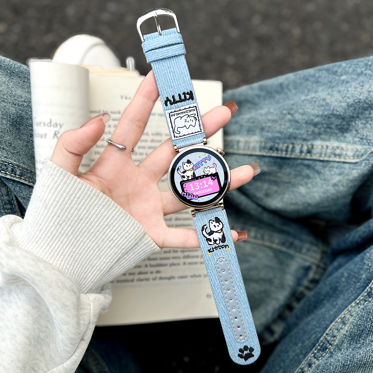 📚 [可爱猫猫刺绣]适用于华为GT5表带秋冬新款智能腕表watchgt4/3可爱女士手表带链watch2pro荣耀gs3女生gt6专用