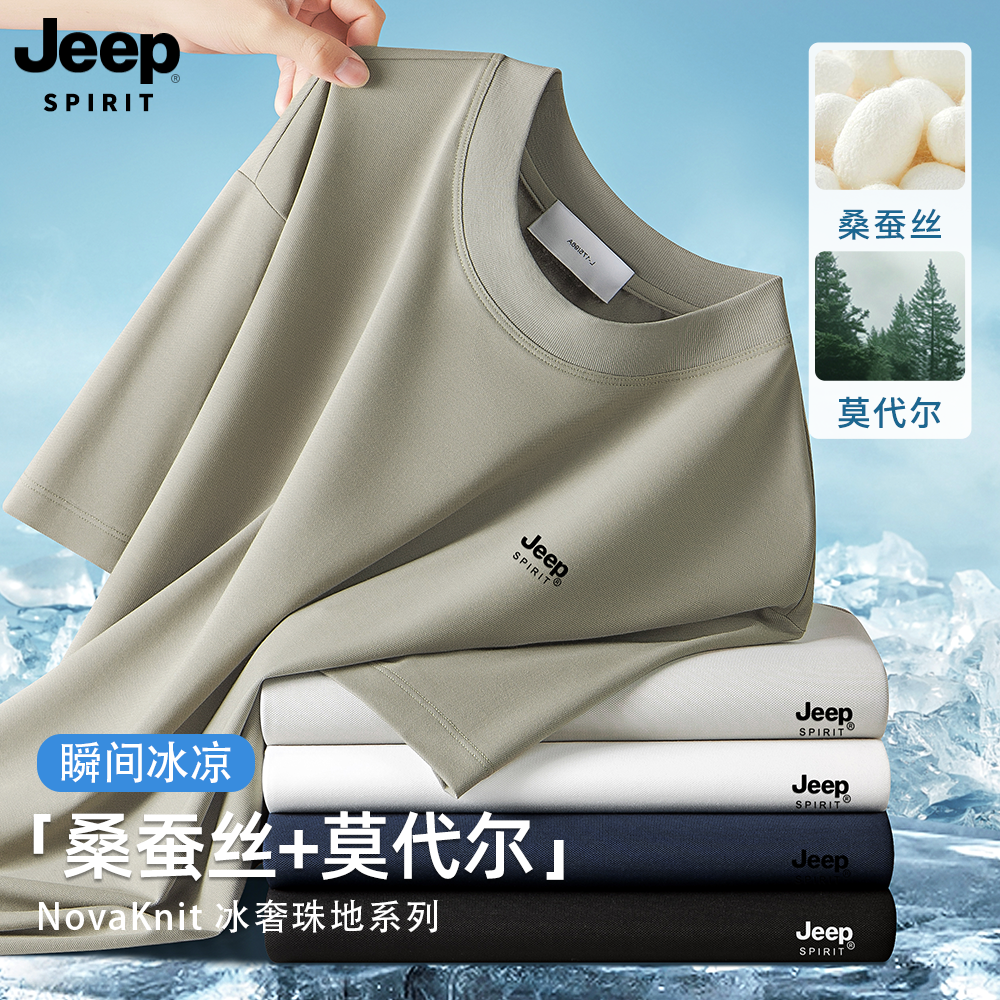 📚 JEEP吉普 桑蚕丝莫代尔珠地棉短袖t恤男户外运动高端2025夏季宽松