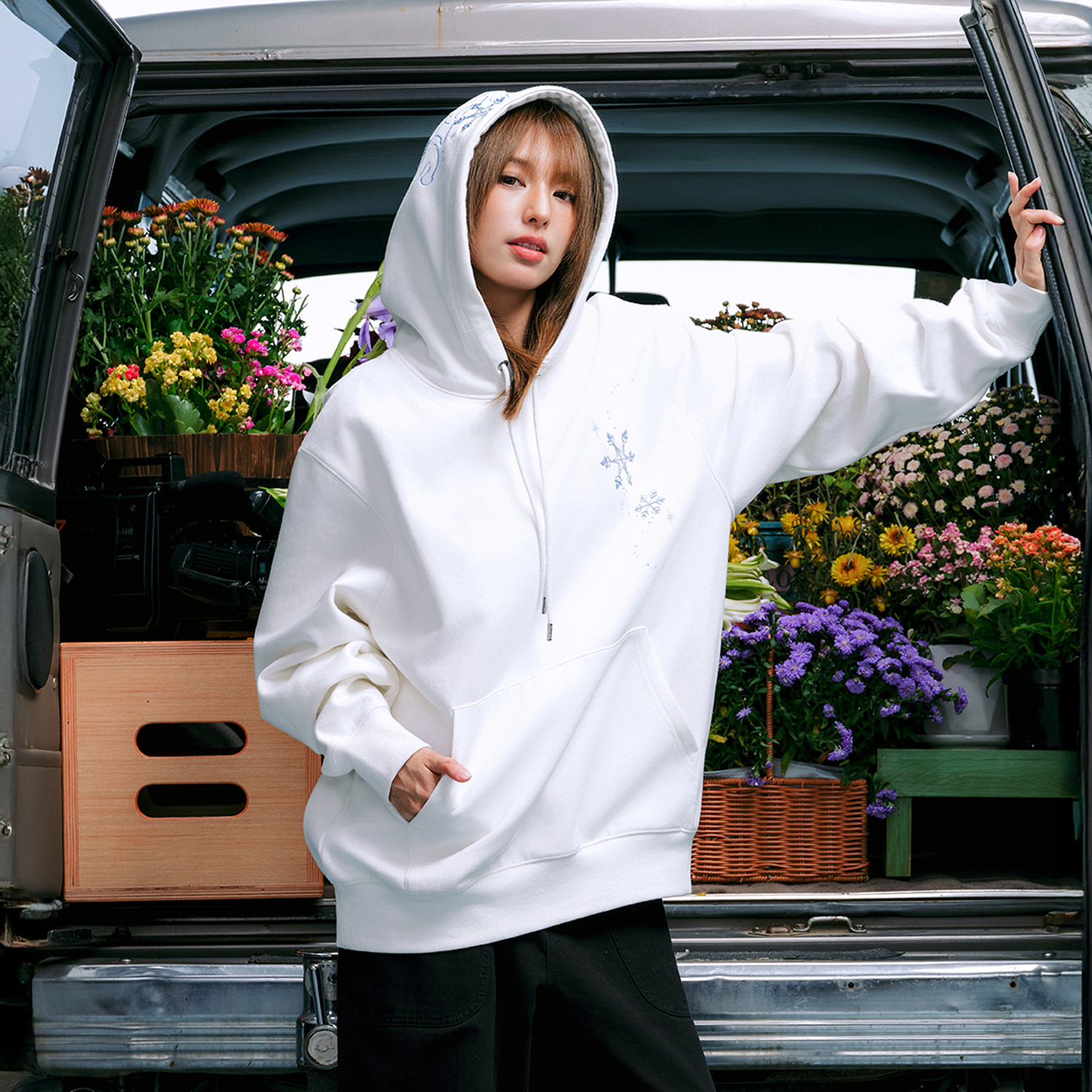 📚 WHOOSIS(不知其名)渐变闪烁立体雪花印花套头帽衫卫衣春秋男女