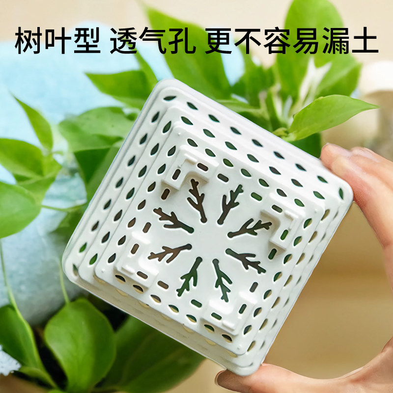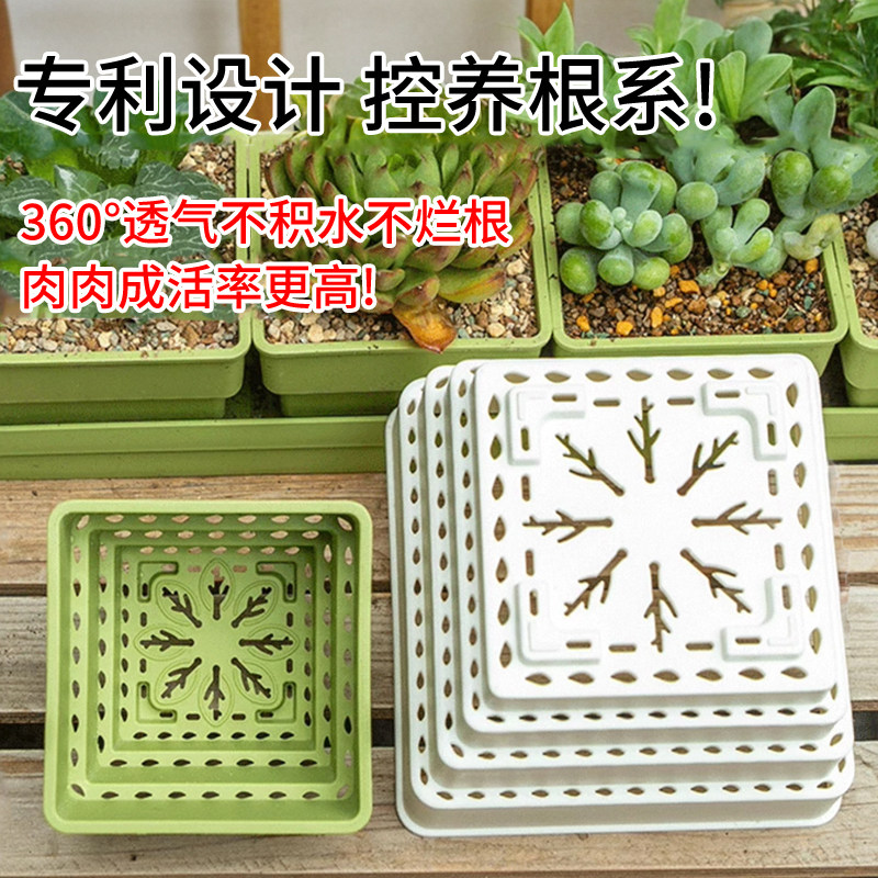 📚 爱美多肉专用花盆小白方组合树脂加厚控根透气塑料植物种植盆带托