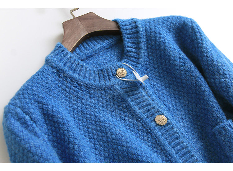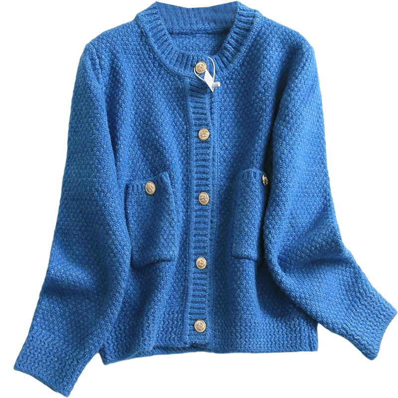 📚 D536纯色口袋圆领单排扣针织开衫外套冬季新款2022长袖女线衫毛衣
