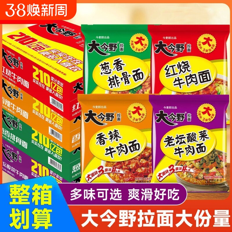 📚 今麦郎方便面大今野整箱批发大今野红烧牛肉面袋装泡面葱香排骨面