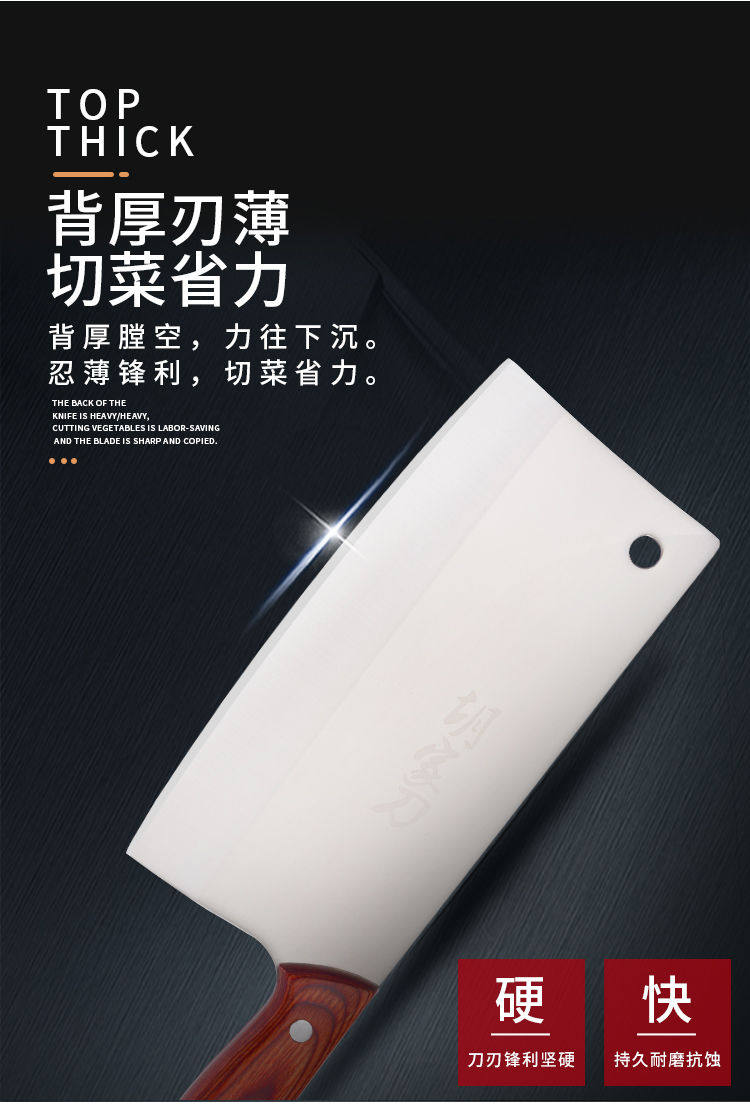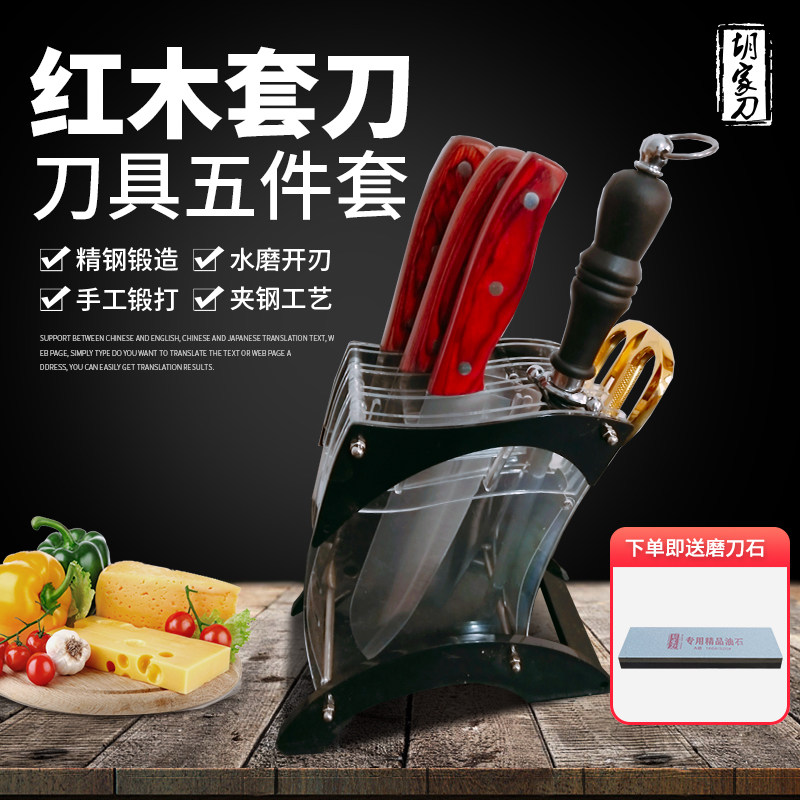 📚 胡家刀切片刀家用五件套装厨房超薄锋利免磨四铬钢菜刀红木柄刀具