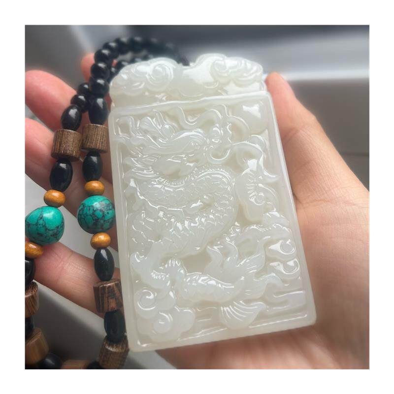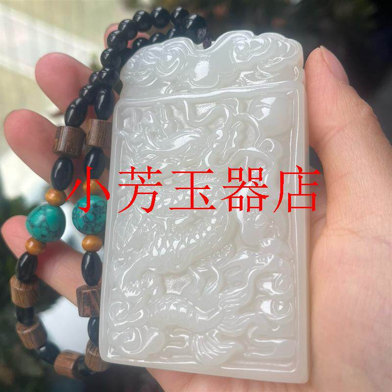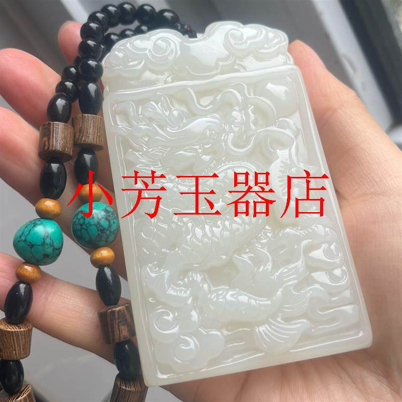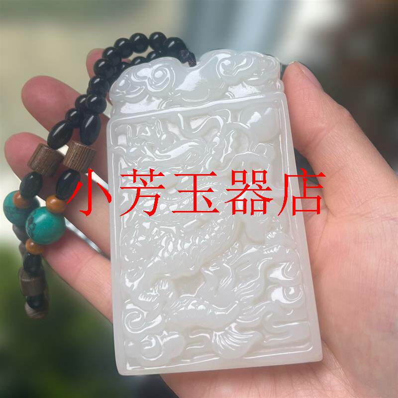 📚 新疆和田玉白玉龙牌手把件高端大气单面玉石羊脂白料龙行天下牌子