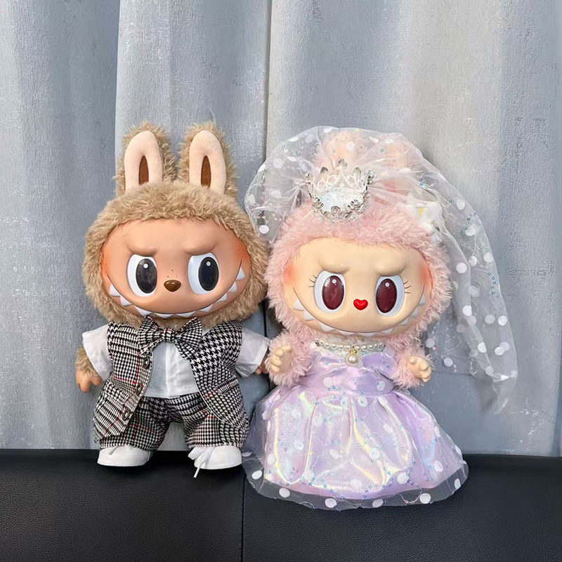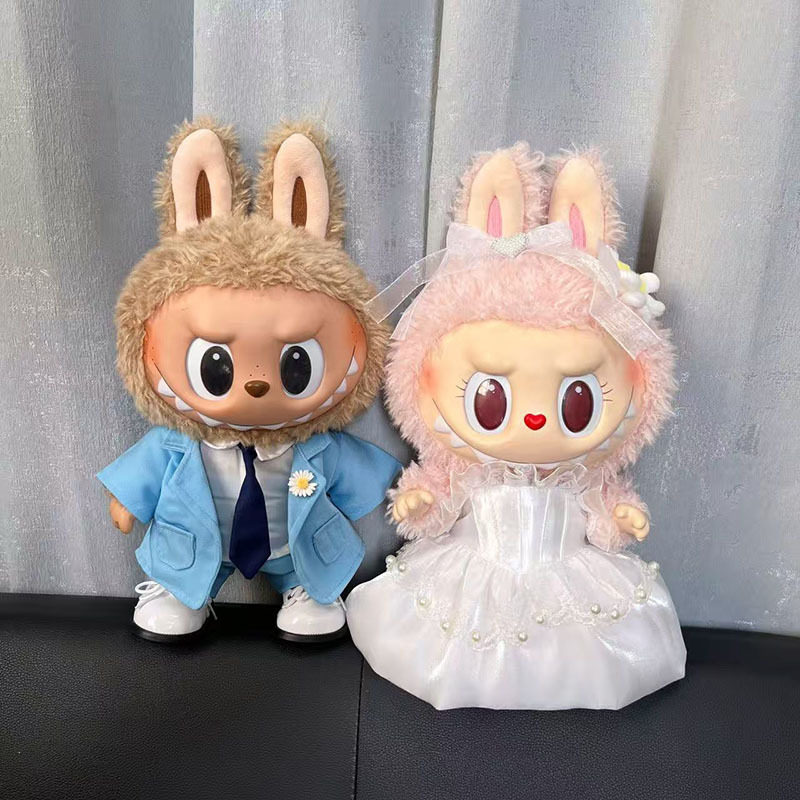 📚 LABUBU搪胶公仔结婚婚纱西装娃衣着替POPMART拉布布玩偶礼服情侣