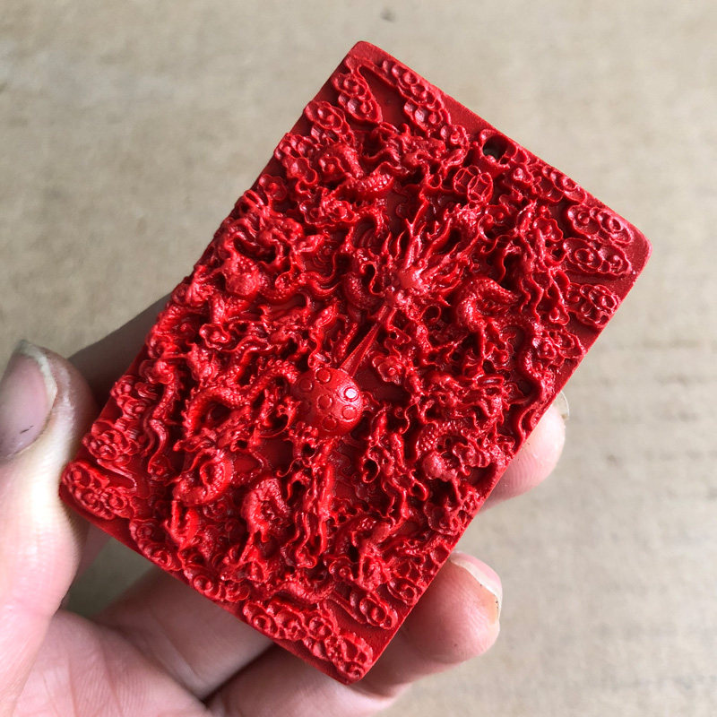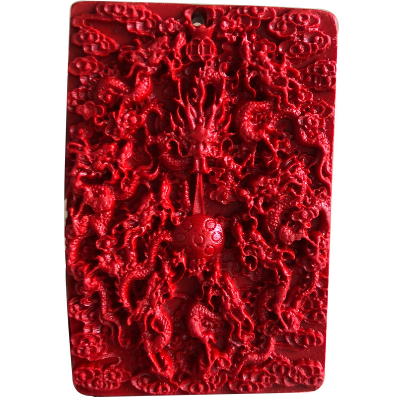 📚 高含量朱砂九龙护主吊坠九龙戏珠男女2021开运佩戴双面方牌玉佩挂