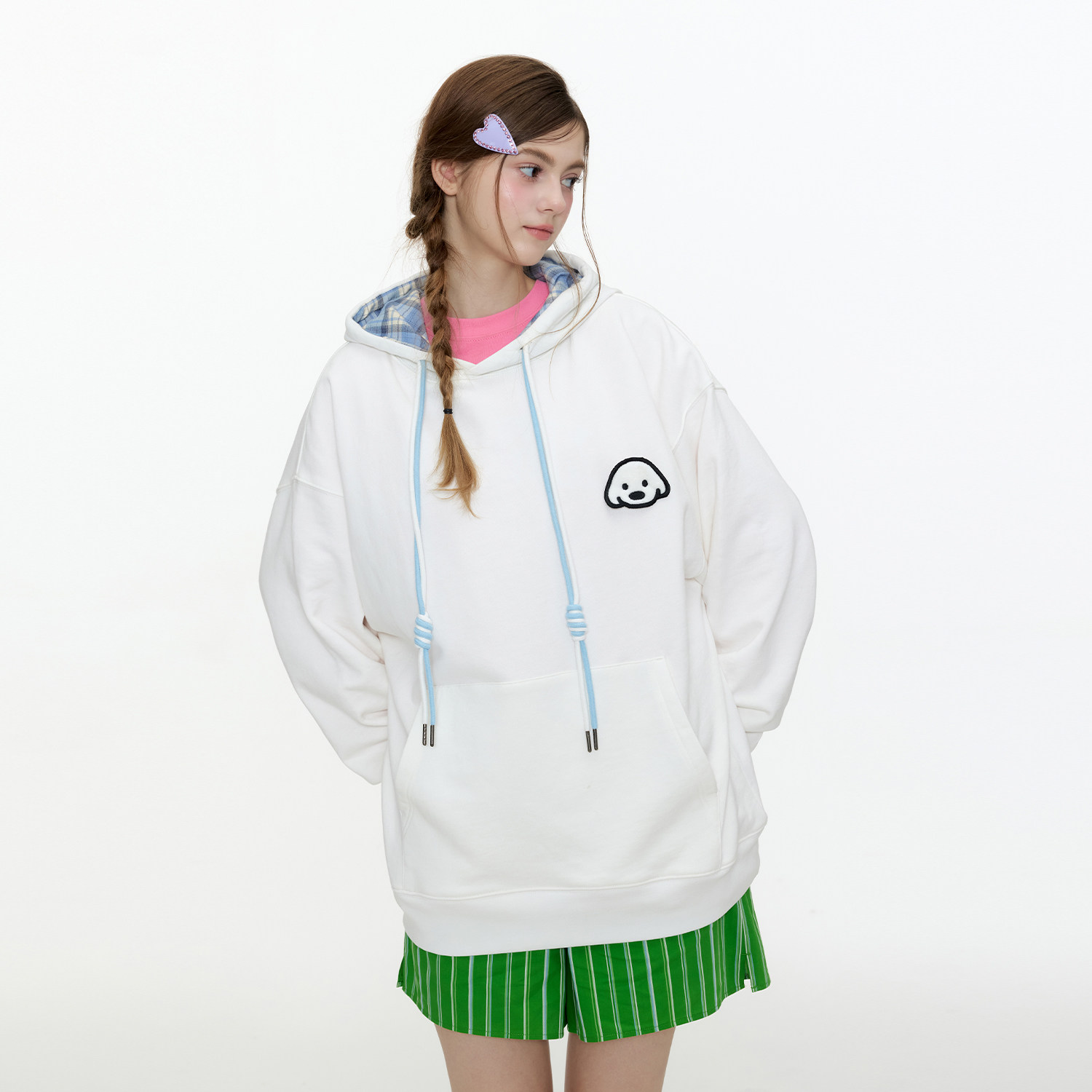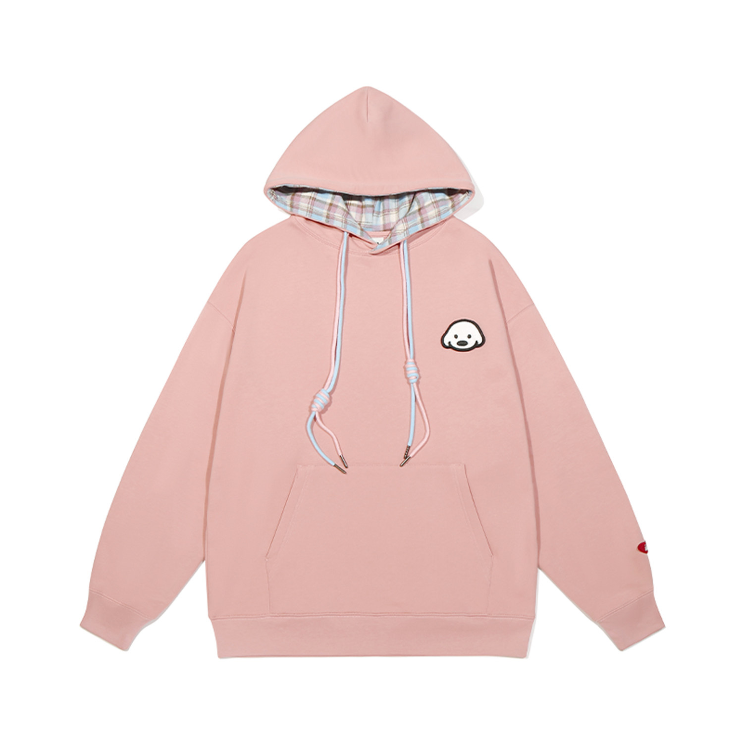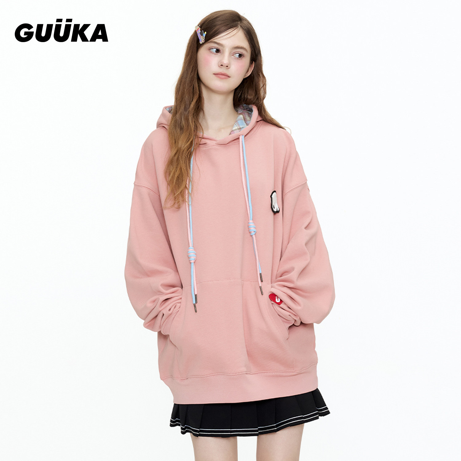 📚 周深同款GUUKA重磅落肩格子帽衫matsui联名小狗粉色连帽卫衣女