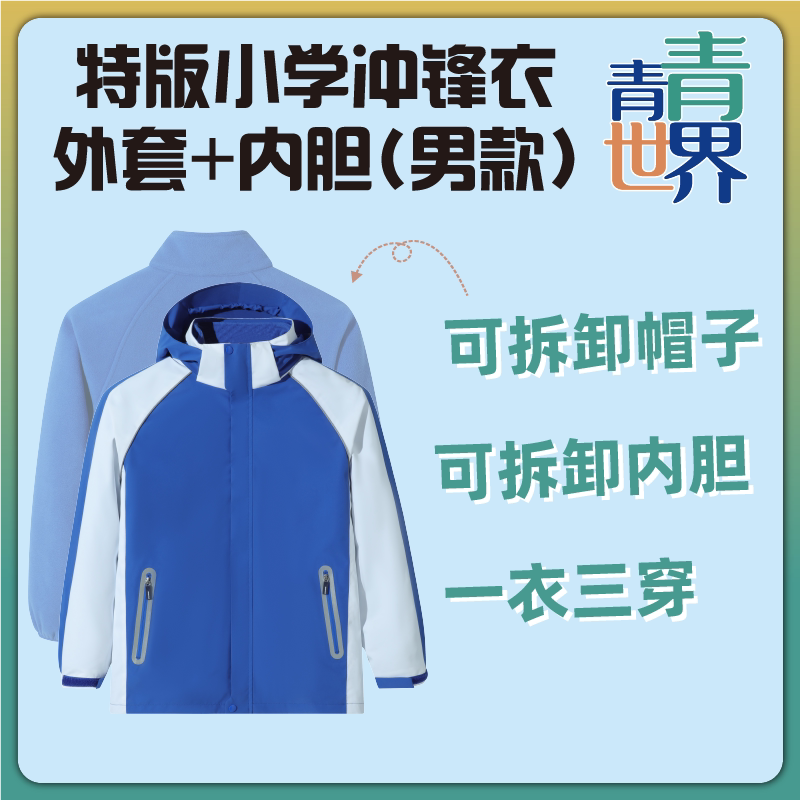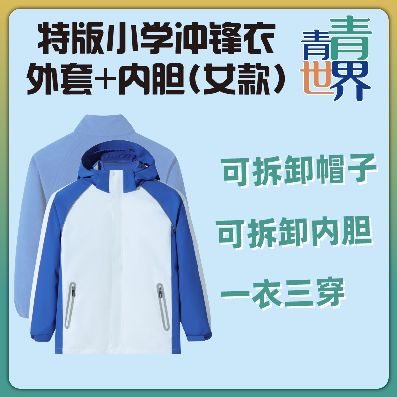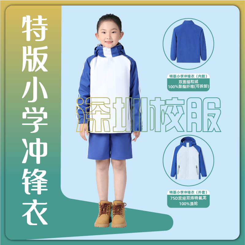 📚 青青世界特版深圳校服三合一冲锋衣男女童秋冬内胆摇粒绒连帽外套