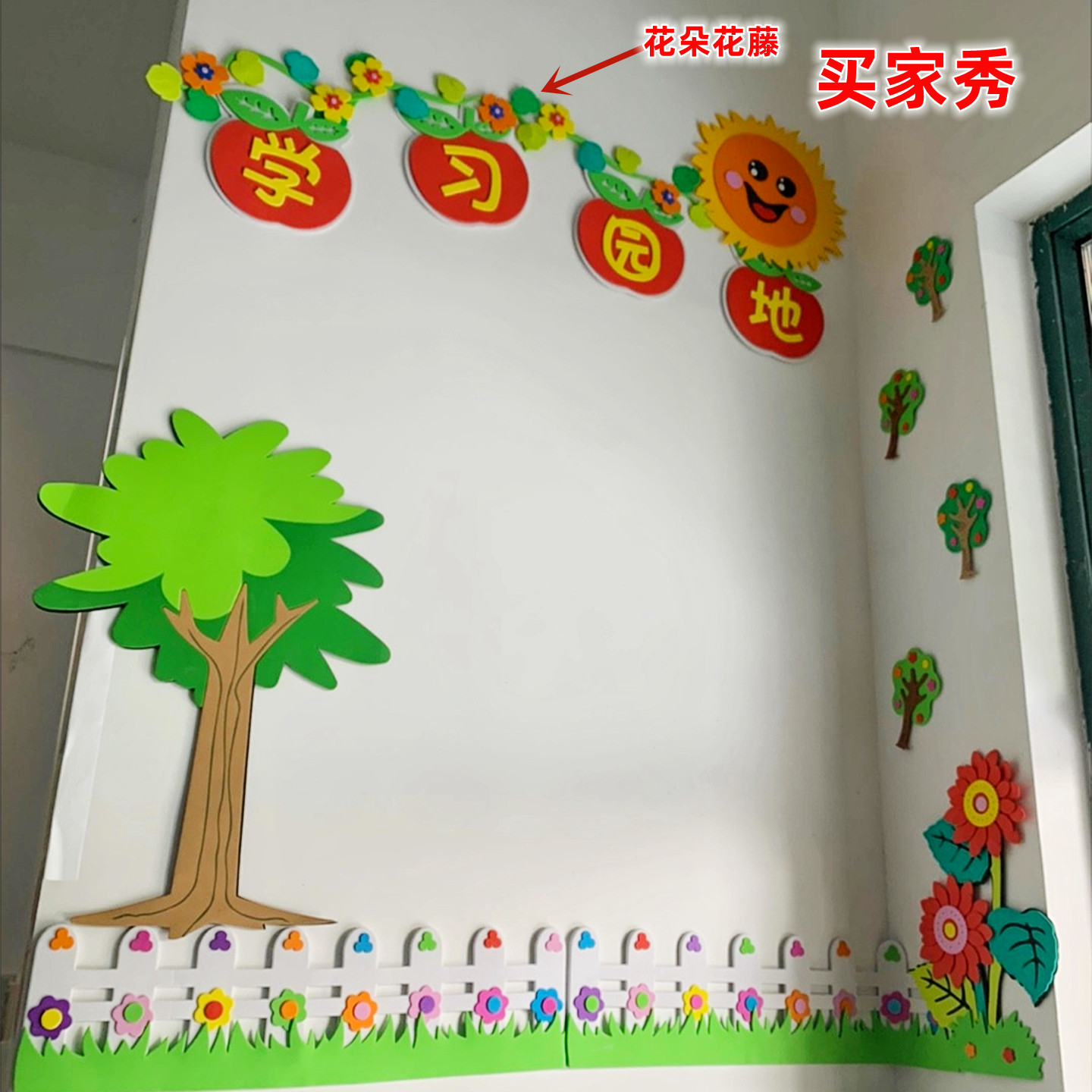 📚 黑板报主题墙边框柳条树叶北欧装饰区角材料 幼儿园环创立体墙贴