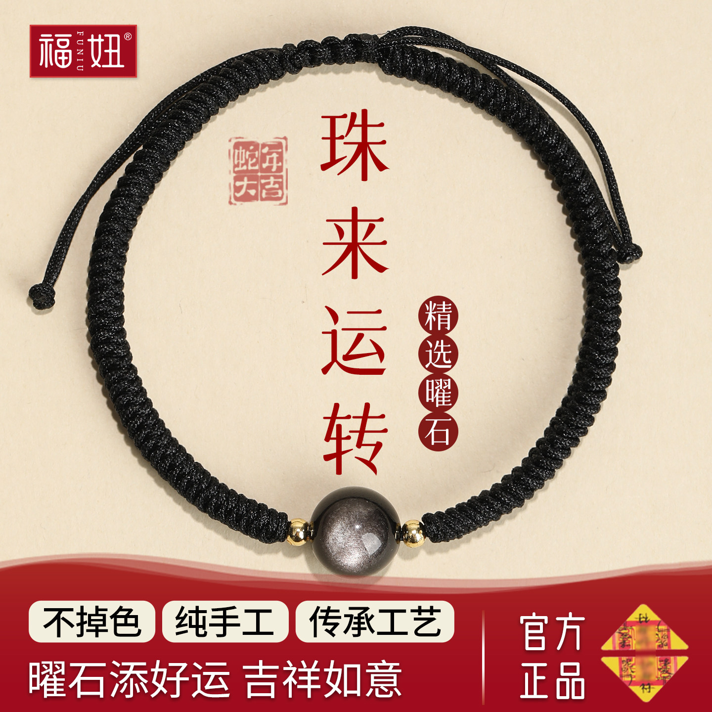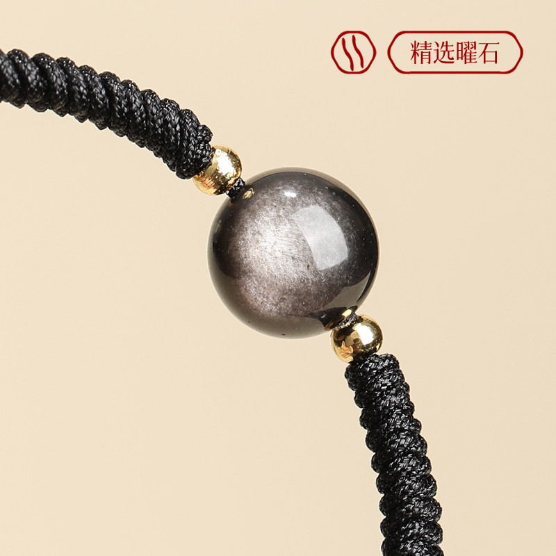 📚 银曜石编织红手绳本命年男女通用转运珠金曜石红绳黑绳手链护身符