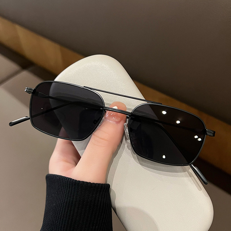 📚 个性墨镜女高级感复古防紫外线遮阳方形双梁小脸太阳镜男金丝边潮