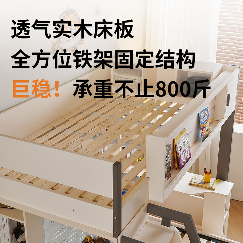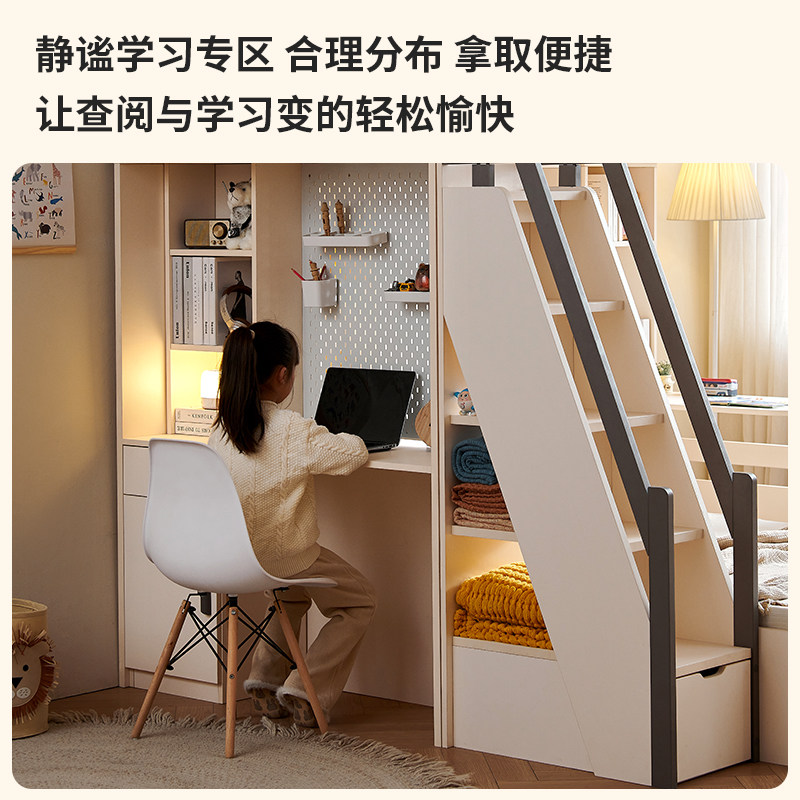 📚 实木上下铺双人儿童床书桌一体多功能双层床错位型组合床高低床