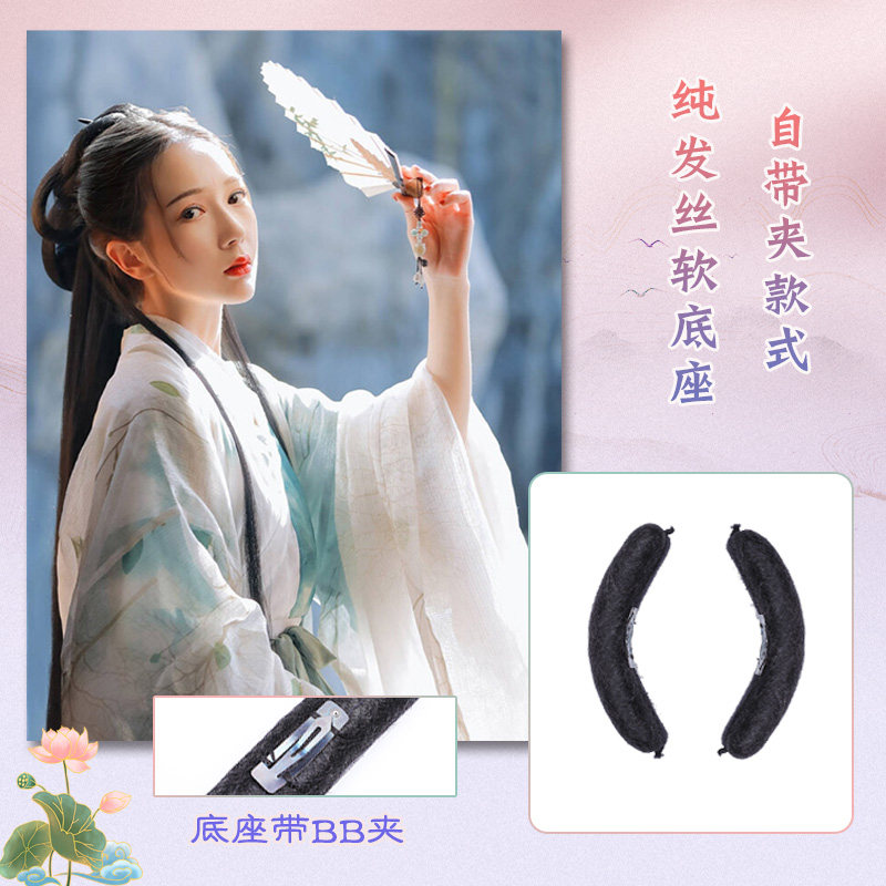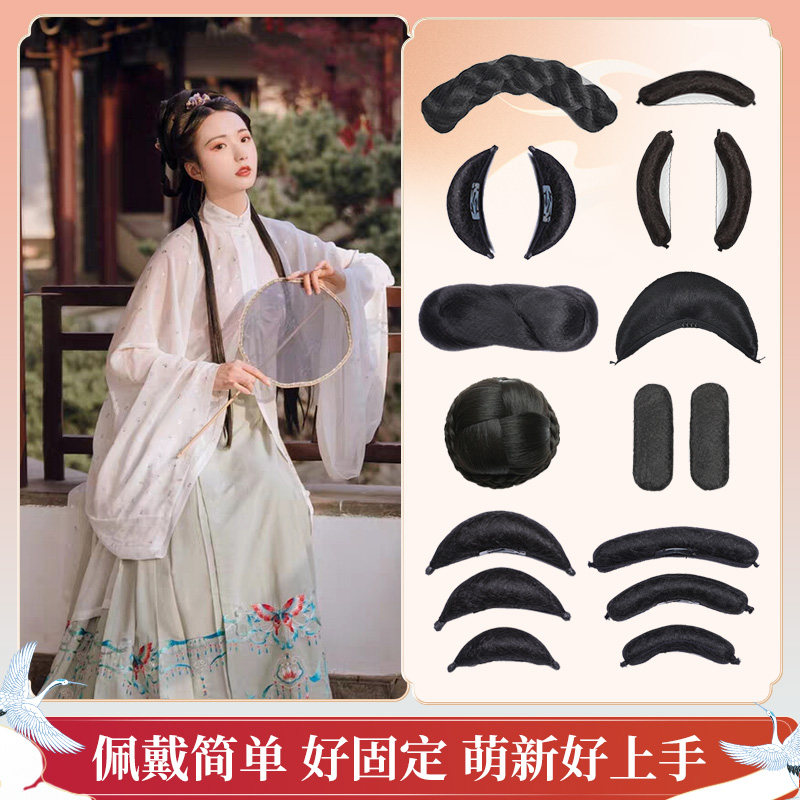 📚 古装汉服假发可弯曲纯发丝牛角百搭麻花发包发冠组合古风日常造型