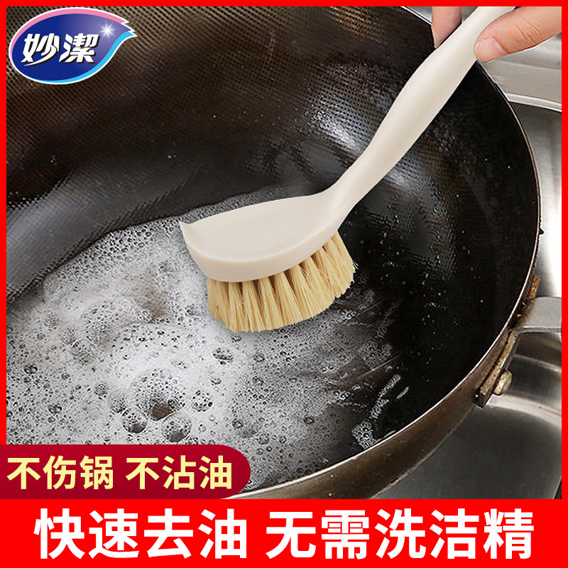 📚 妙洁刷锅神器植物纤维剑麻去油锅刷厨房长柄刷锅洗碗刷子百洁刷