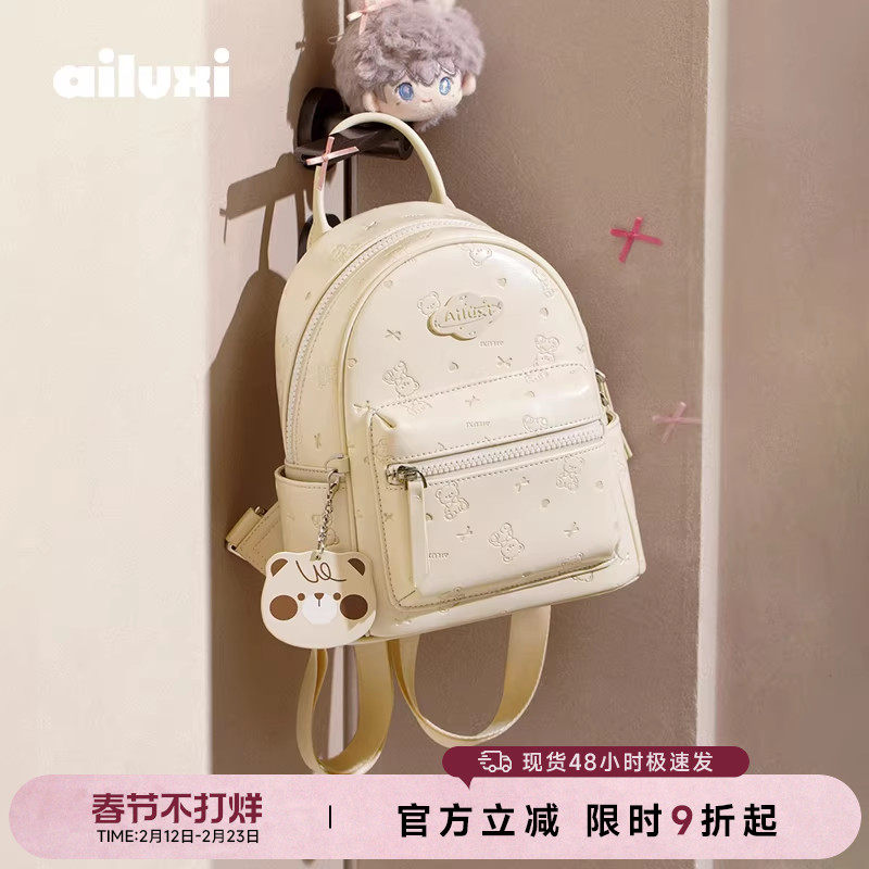 19¥ HU006 7hnzUL1T8kq¥ https://m.tb.cn/h.7BkE7gk 爱路喜包包女生小众设计感可爱小熊上班通勤旅游双肩包白色小背包 --------------------- 【原售价】209元 【现售价】209元。