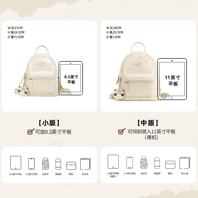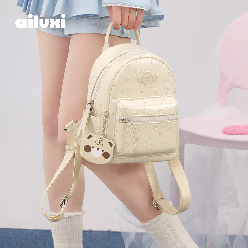 📚 爱路喜包包女生小众设计感可爱小熊上班通勤旅游双肩包白色小背包