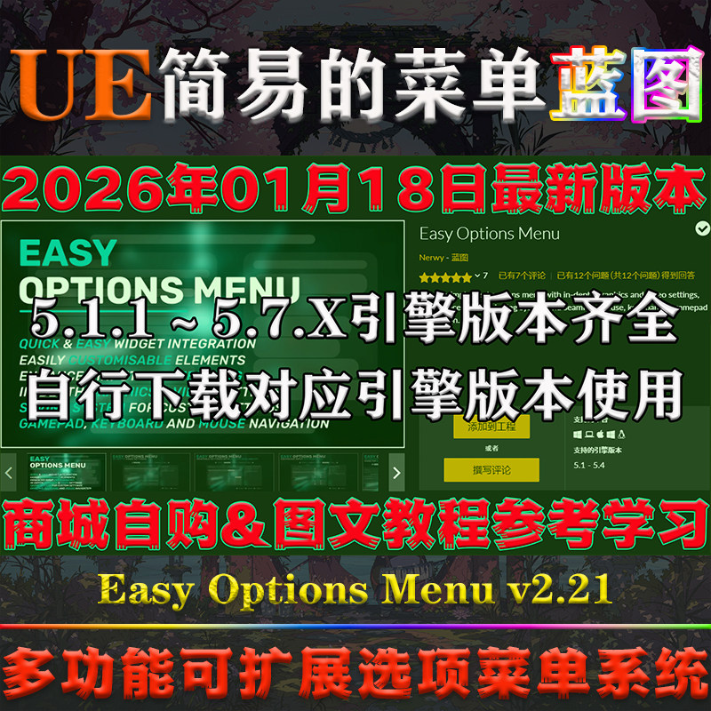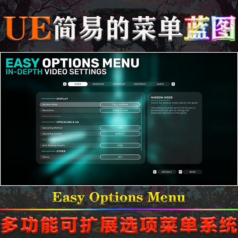 📚 UE5.1-5.7虚幻蓝图 Easy Options Menu 简易游戏设置选项菜单系统
