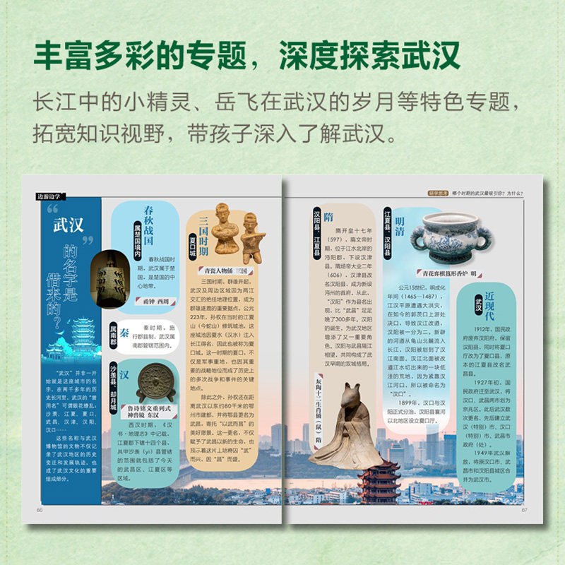 📚 武汉研学手册 正版现货 6大章节介绍湖北大江大河武汉非遗武大樱花黄鹤楼小吃热干面dd 6-8-12岁儿童小学武汉旅游景点书籍科普书