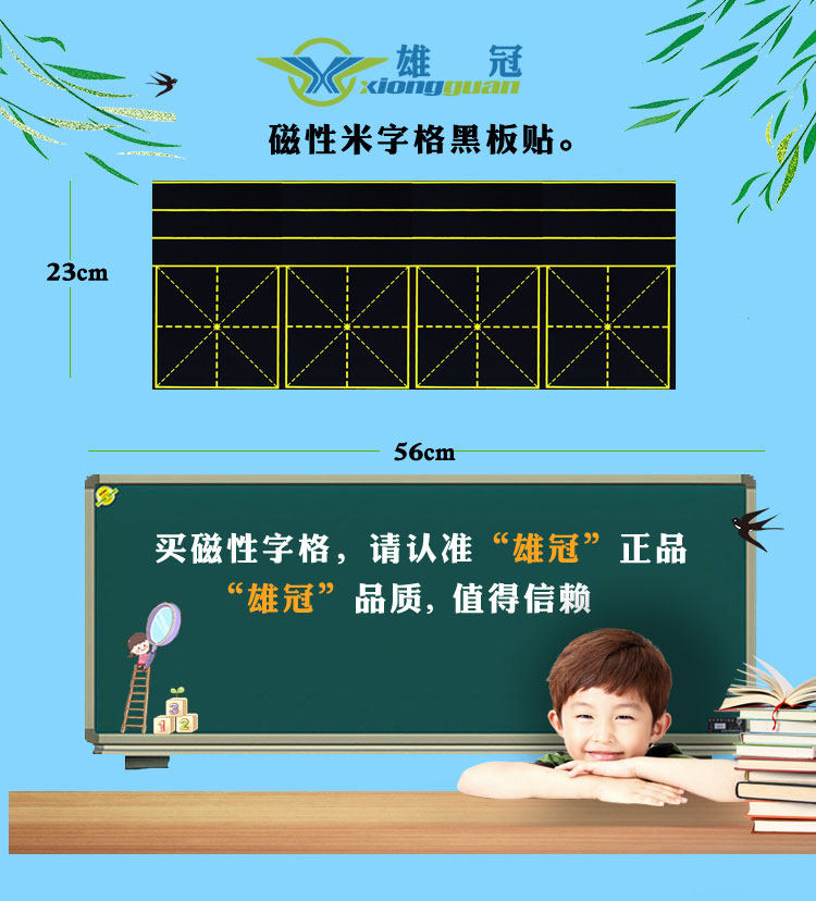 📚 磁性四连拼音米字格黑板贴粉笔小黑板磁贴写字板软磁铁教具词条贴