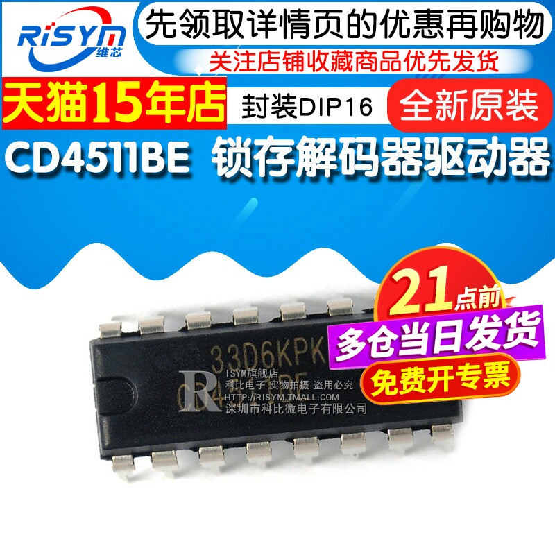 📚 Risym 全新原装 CD4511BE 锁存解码器驱动器 直插 封装DIP16